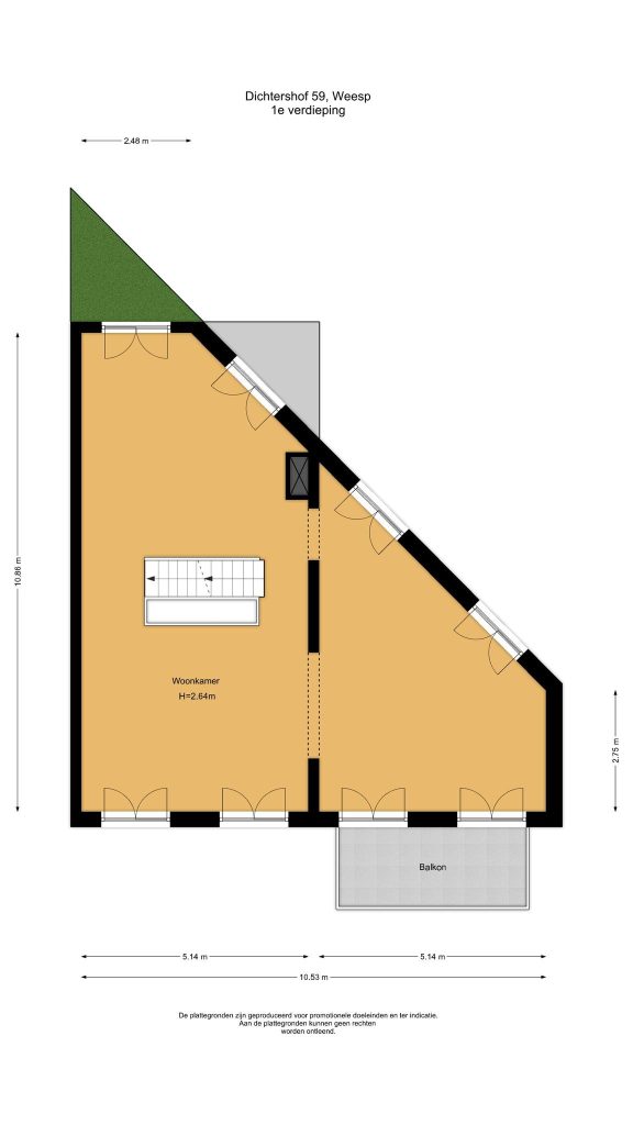 De woning ligt aan het Dichtershof en is onderdeel van het project “Parlando”, opgeleverd in 2005. Het huis is gelegen op een steenworp afstand van het station en op loopafstand van het centrum van Weesp. Uiteraard ontbreken een eigen parkeerplaats in de parkeergarage en een ruime berging niet en ook is er volop buitenruimte.