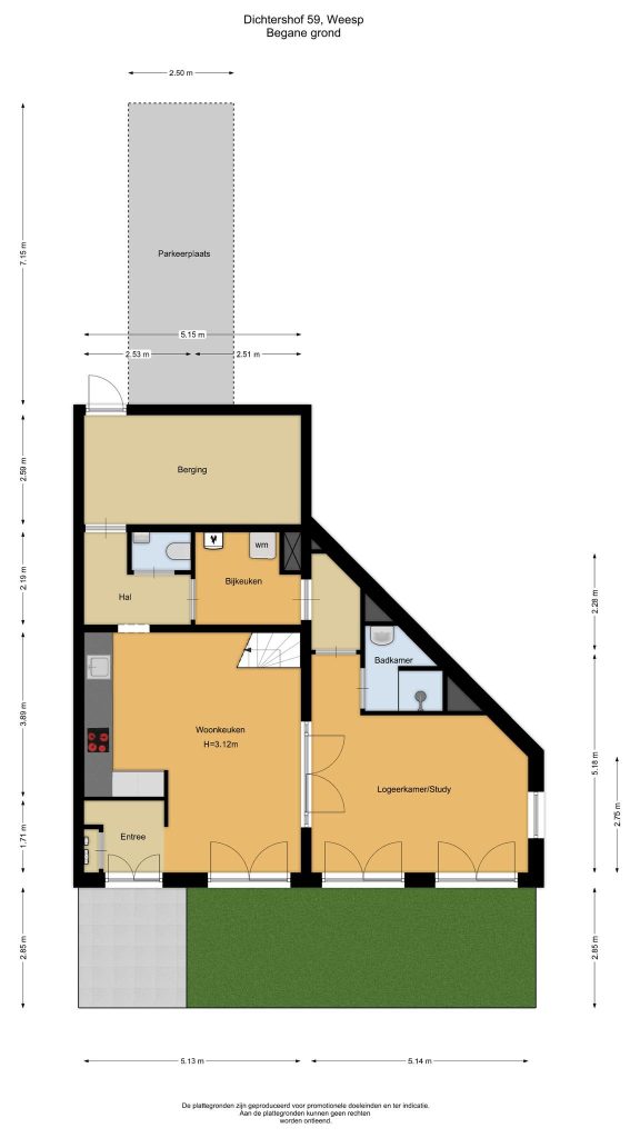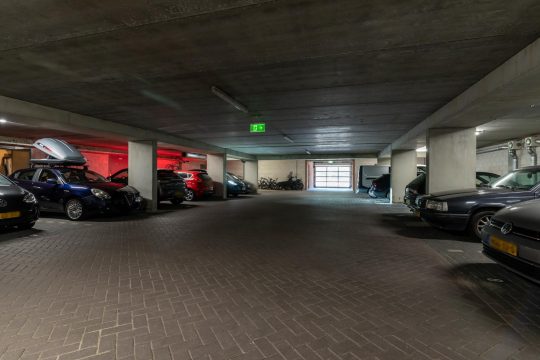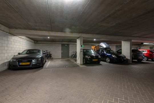 Op de begane grond bevindt zich de parkeergarage met eigen parkeerplaats voorzien van laadpunt voor een elektrische auto. De parkeergarage is vanuit de woning bereikbaar. De berging (ca. 13 m²) bevindt zich eveneens op de begane grond en is ook vanuit de woning bereikbaar.