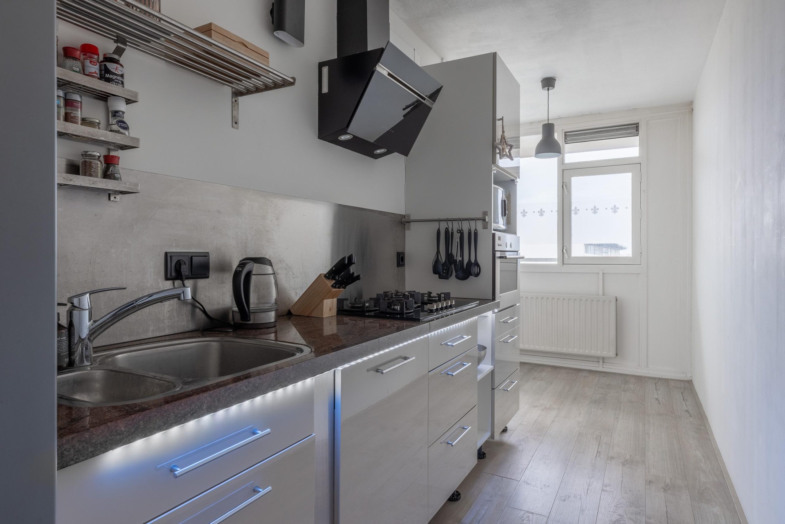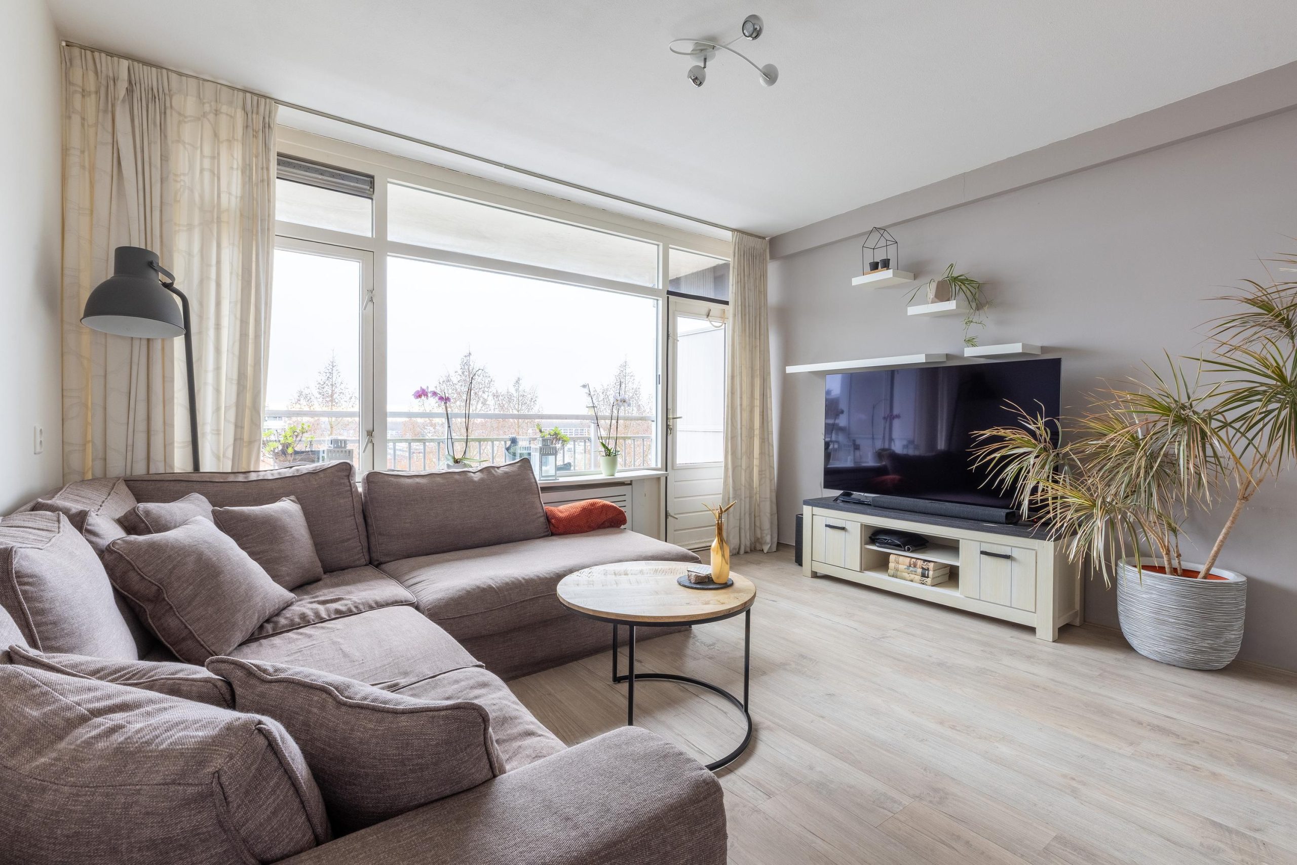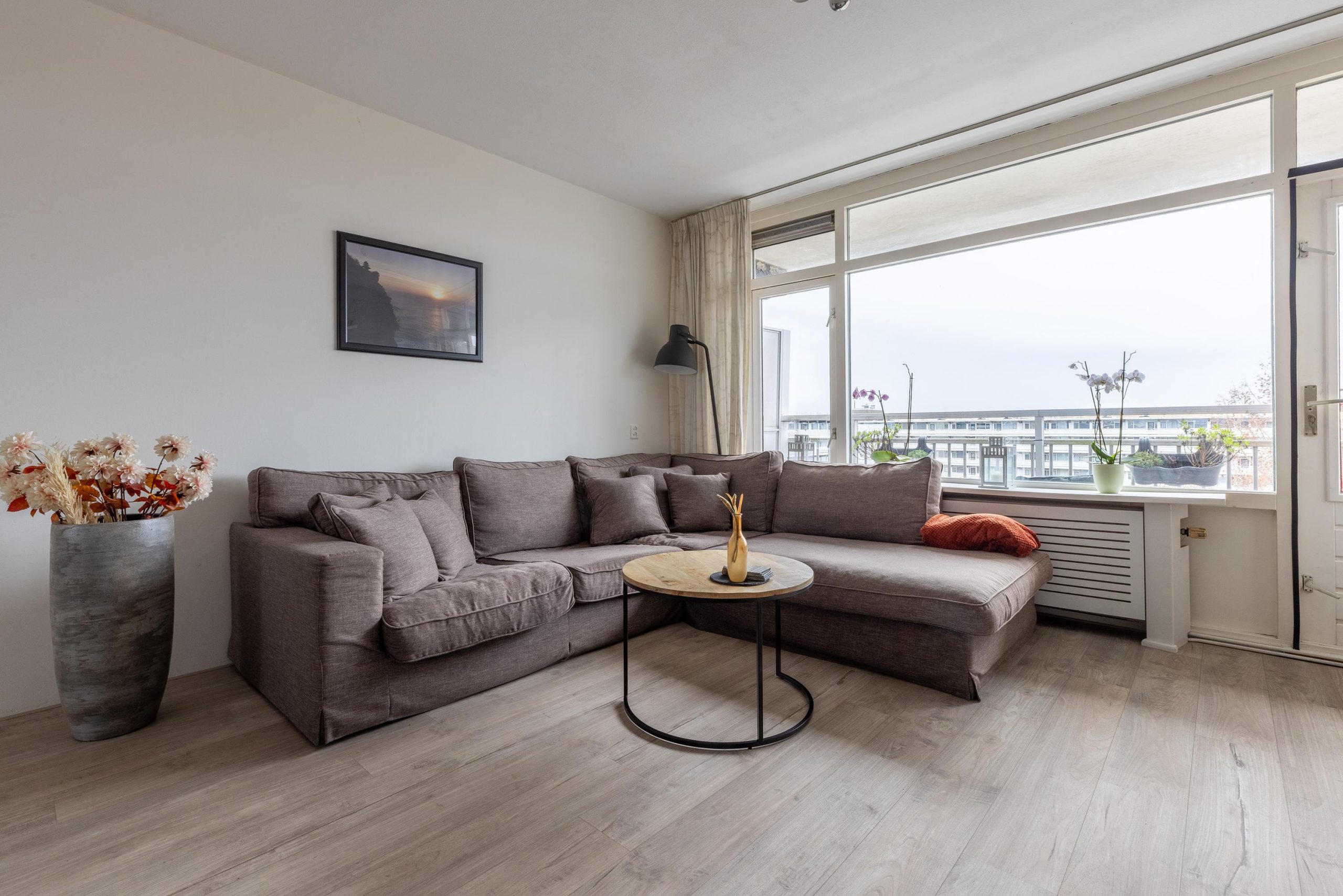 Dit ruime en lichte appartement heeft een woonoppervlakte van 63 m² en ligt op de 8e (tevens hoogste) woonlaag van een goed onderhouden appartementengebouw. Het appartement is geheel voorzien van een laminaat vloer en heeft een ruime slaapkamer voorzien van een raam met HR++ (mat)glas. De keuken, modern en vernieuwd in 2023, ligt aan de galerijzijde. Het balkon is 10 meter lang en gelegen op het zuiden (schitterend vrij uitzicht).