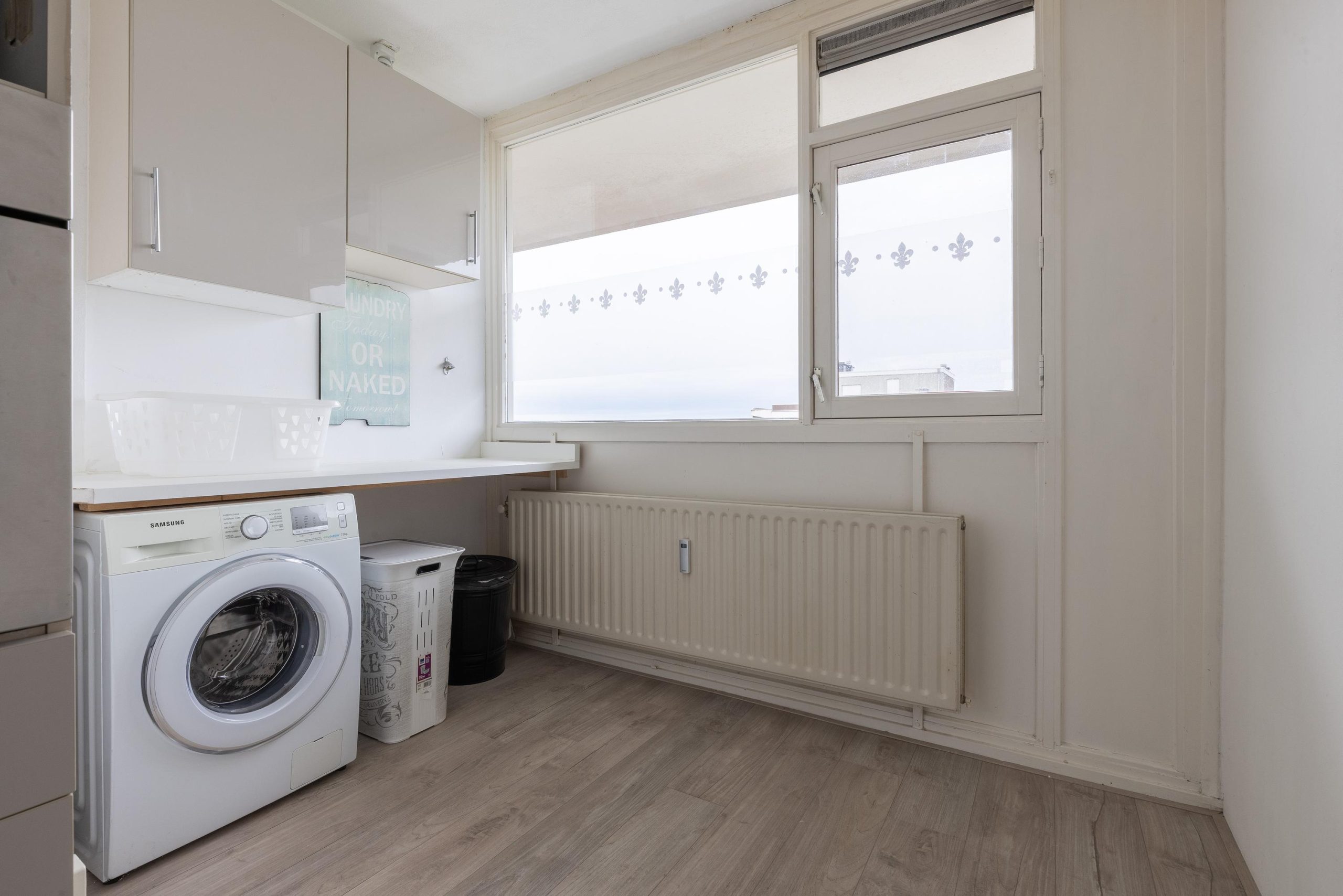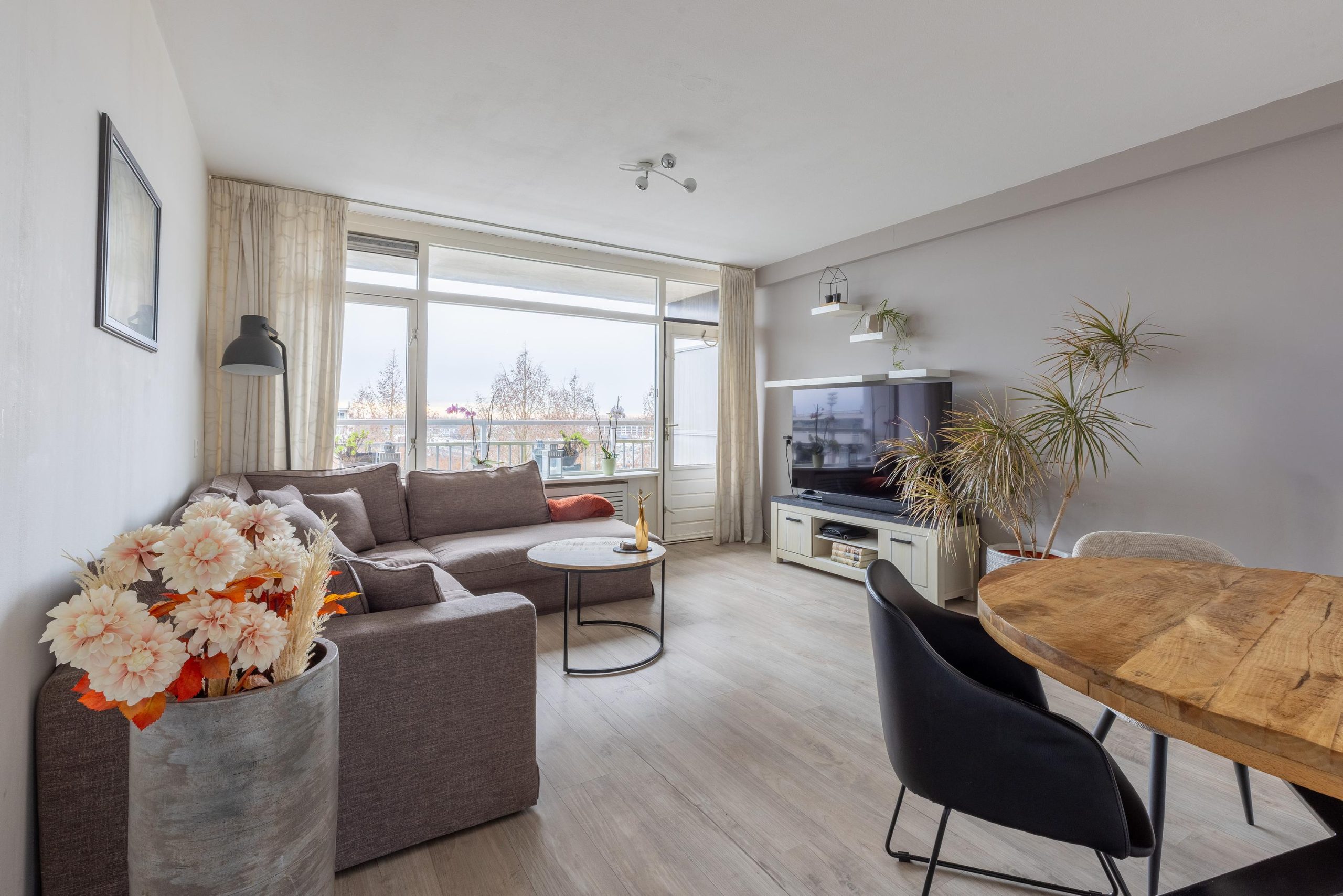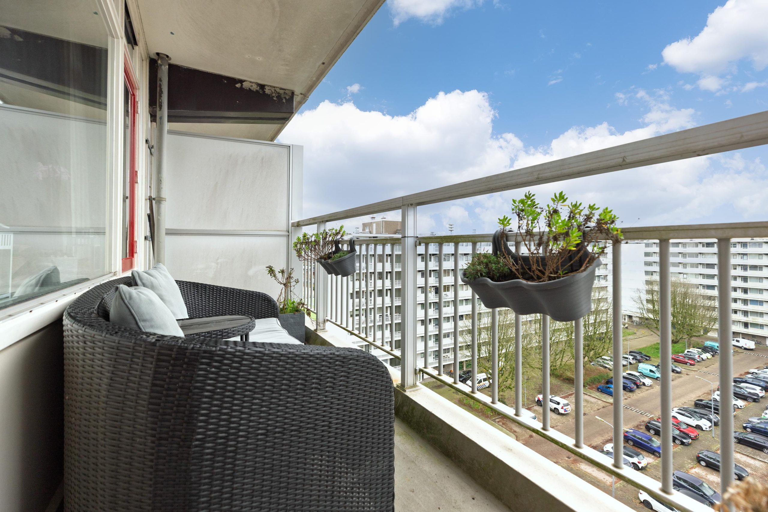 Dit ruime en lichte appartement heeft een woonoppervlakte van 63 m² en ligt op de 8e (tevens hoogste) woonlaag van een goed onderhouden appartementengebouw. Het appartement is geheel voorzien van een laminaat vloer en heeft een ruime slaapkamer voorzien van een raam met HR++ (mat)glas. De keuken, modern en vernieuwd in 2023, ligt aan de galerijzijde. Het balkon is 10 meter lang en gelegen op het zuiden (schitterend vrij uitzicht).