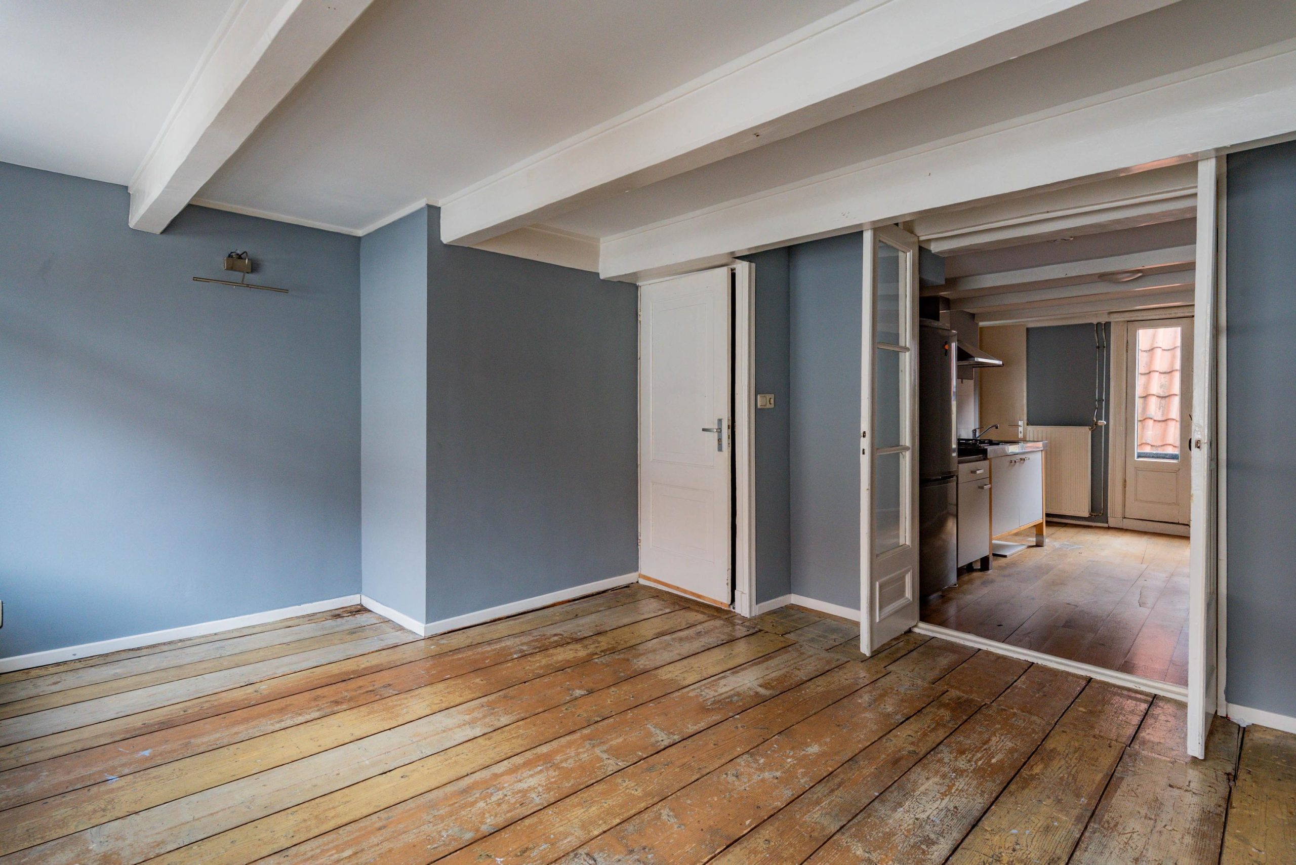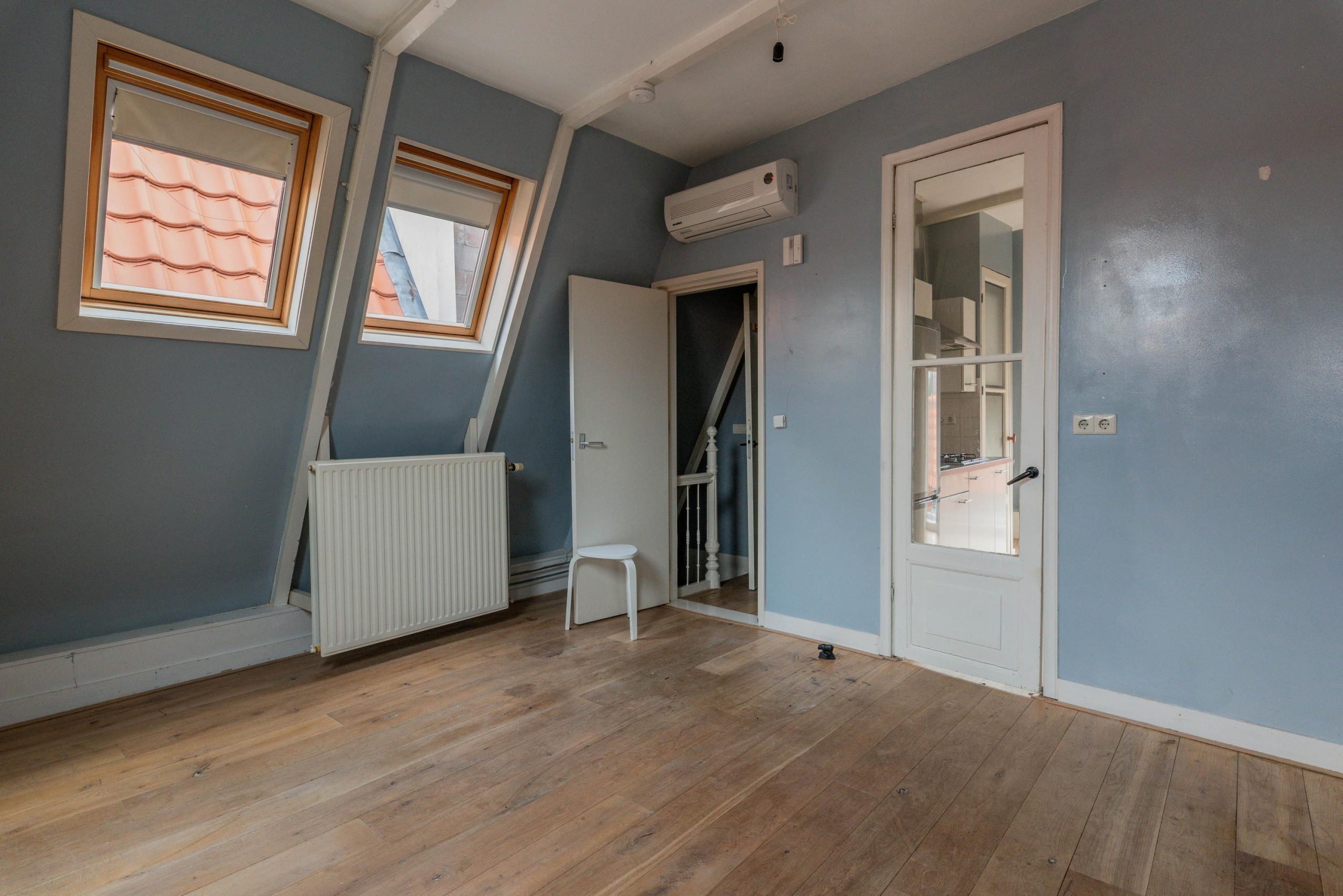 Het appartement strekt zich uit over twee woonlagen. Voorheen waren beide verdiepingen in gebruik als losse appartementen (niet kadastraal gesplitst), elk met een eigen keukenblok en badkamer. Dit maakt de woning bijzonder veelzijdig. Je kunt het appartement gebruiken zoals het nu is, met twee zelfstandige woonlagen of verbouwen tot één sfeervol appartement met een moderne indeling en meerdere slaapkamers.