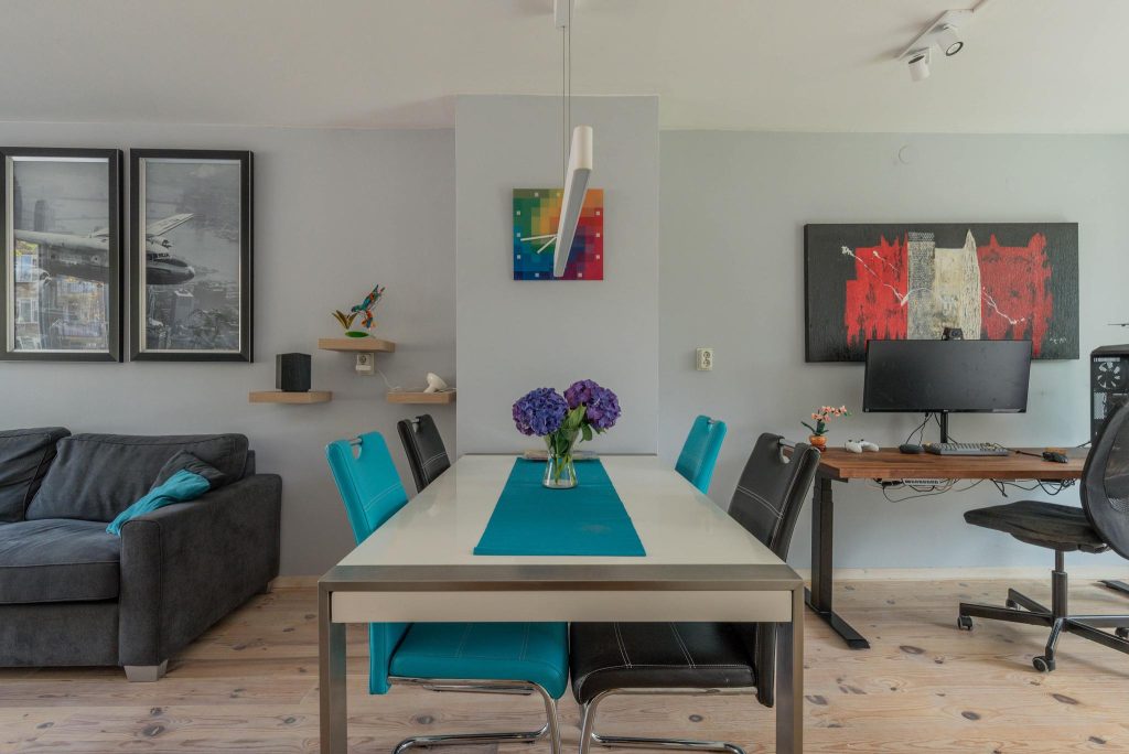 De ligging van het appartement is perfect; In een paar minuten fiets of loop je naar het gezellige oude centrum van Weesp. Hier vind je diverse speciaalzaken zoals bakkers, een slager en een groentespecialist, leuke cadeauwinkeltjes en een goede ijssalon. Bovendien zijn er verschillende restaurants, cafés en sportverenigingen in de buurt. Ook het NS-station is dichtbij, in 5 minuten loop je naar de trein van waaruit je binnen 17 minuten op Amsterdam CS staat. Uiteraard zijn er ook goede verbindingen naar Schiphol, Hilversum en Utrecht. Pak je liever de auto? Ook de uitvalswegen A1, A9 en A10 zijn snel en goed te bereiken.