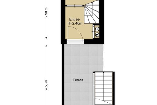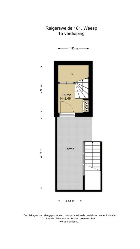 Parterre: ruime berging met elektra en trapopgang naar 1e etage.