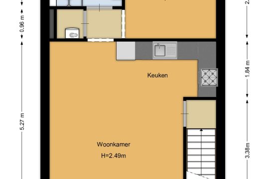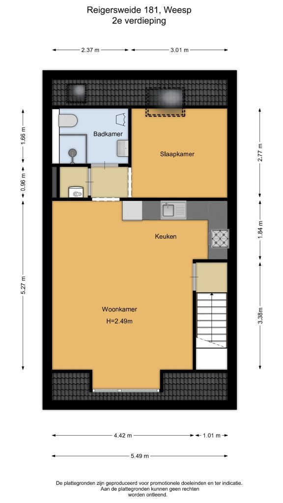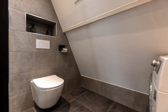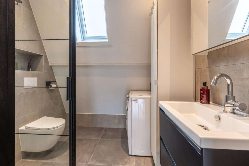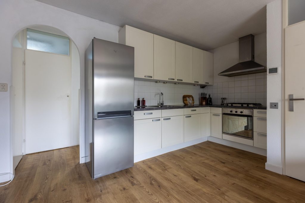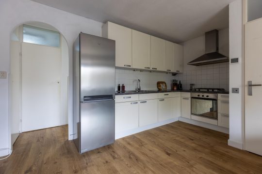 2e etage: overloop, lichte woonkamer met dakkapel aan de voorzijde en open keuken voorzien van inbouwapparatuur, slaapkamer aan de achterzijde met Velux dakraam, tussenhal met bergkast voorzien van Intergas Kombi Kompakt HRE uit 2019 en badkamer met inloopdouche, wastafelmeubel, hangtoilet en wasmachineaansluiting.