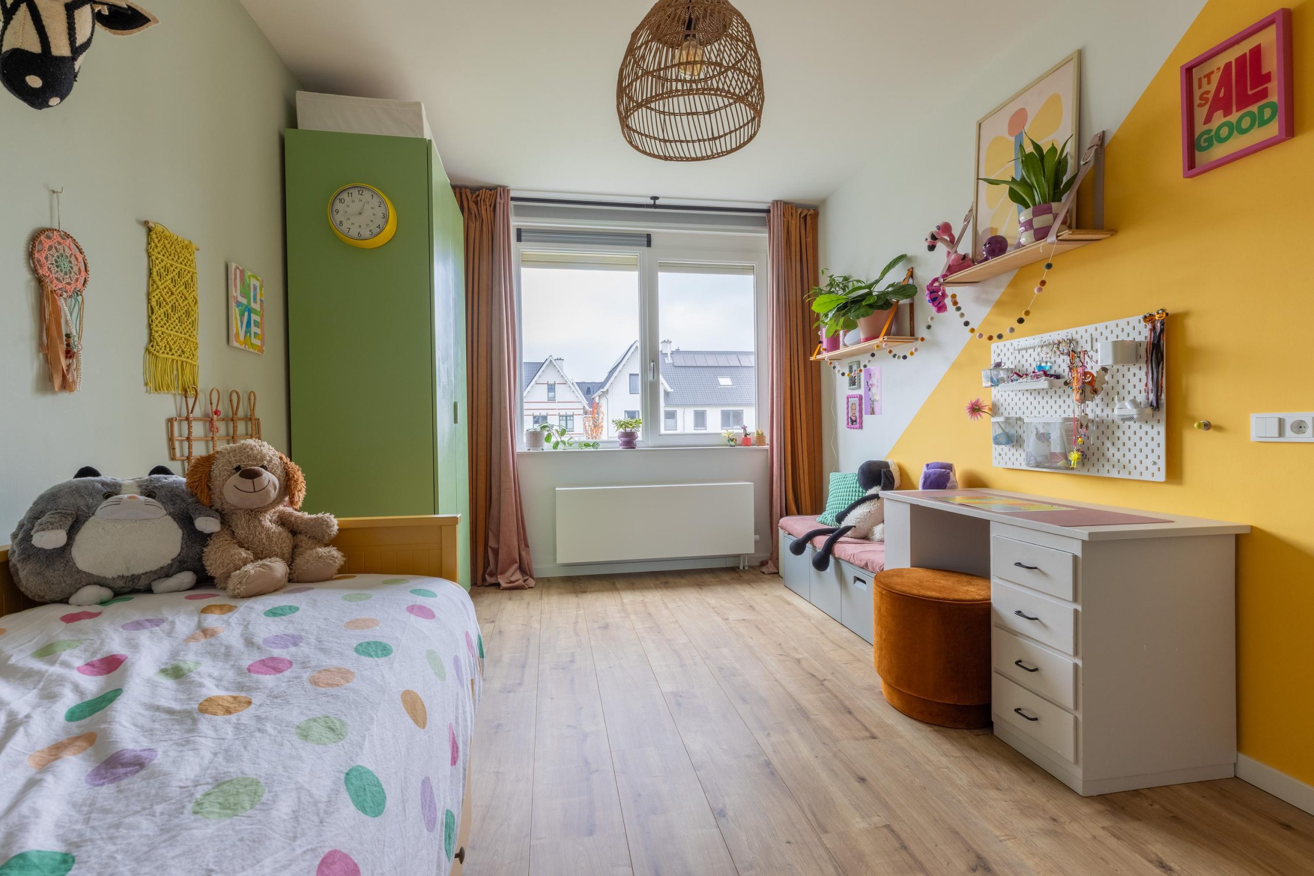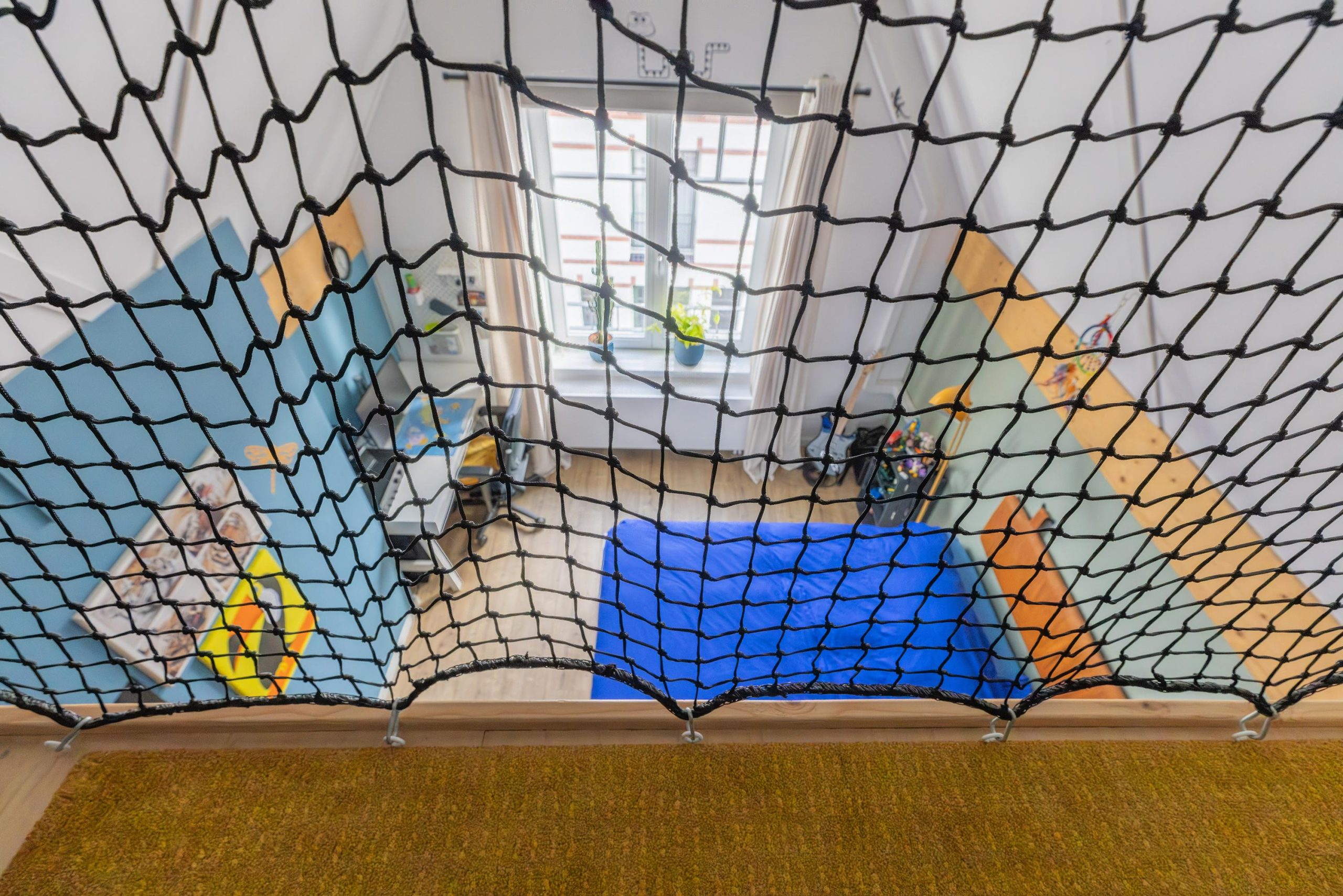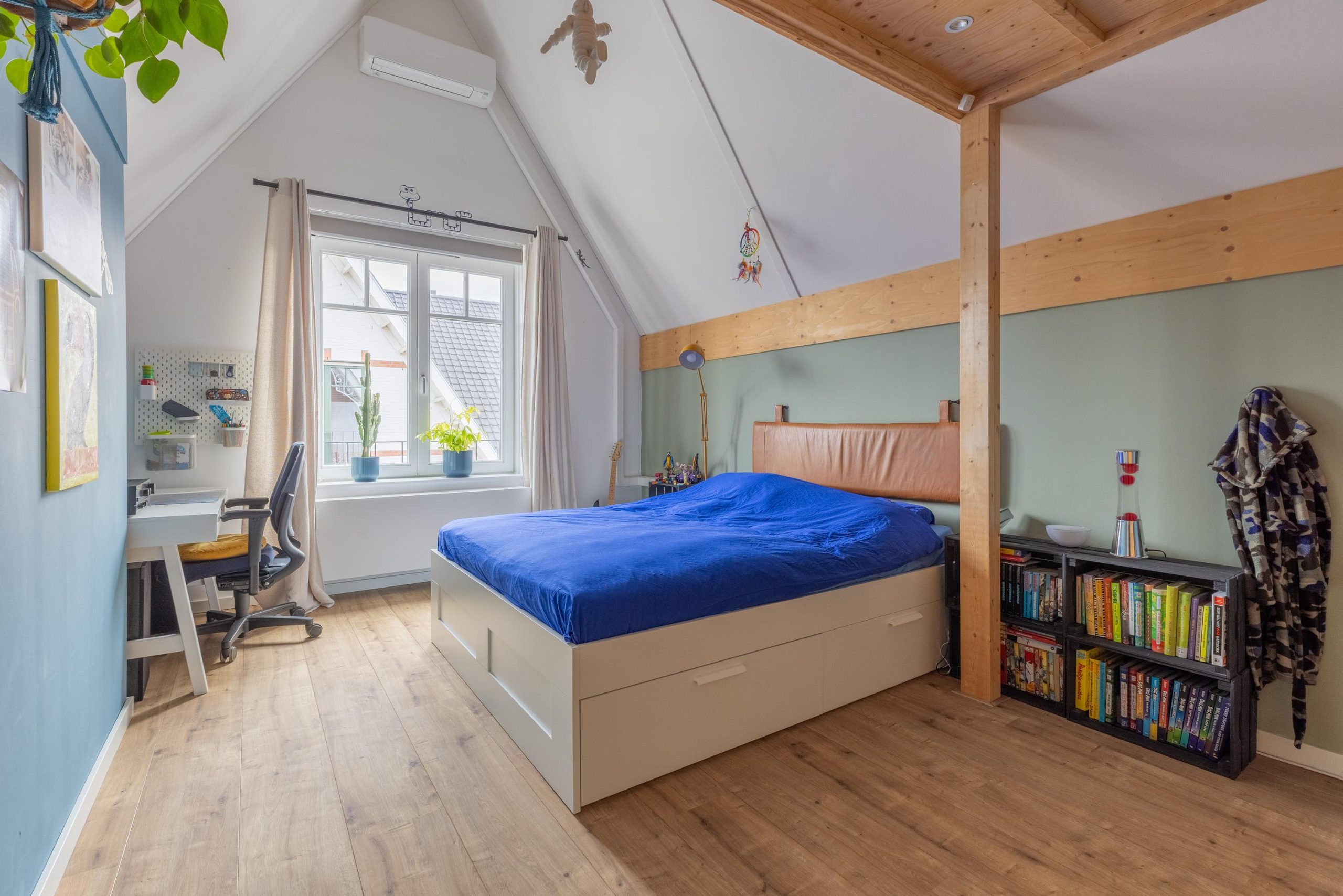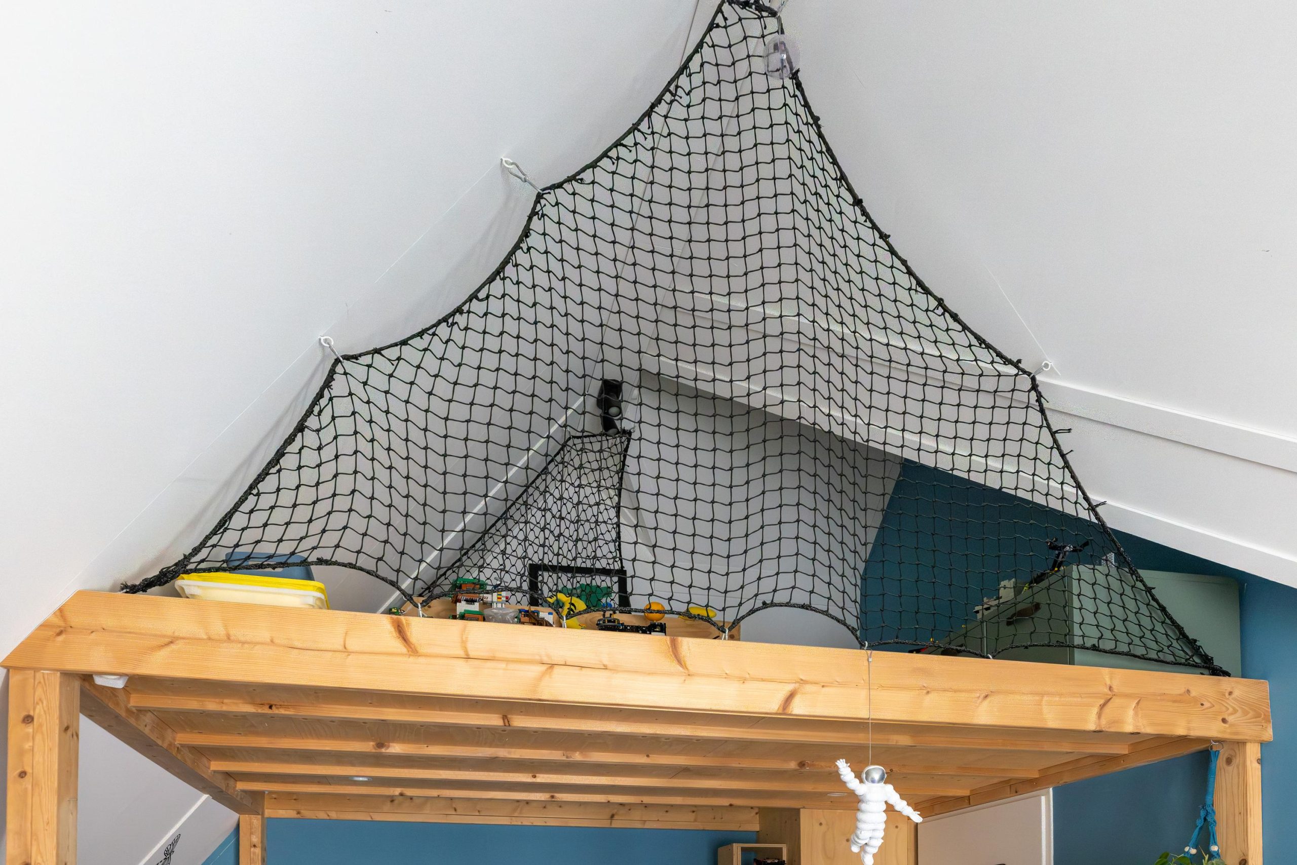 Tweede verdieping: Overloop met technische ruimte waarin zich de CV, omvormer van de zonnepanelen, mechanische ventilatie en de aansluiting voor wasmachine en droger. De Solartube zorgt voor daglicht toetreding. Aan de voorzijde vind je een riante slaapkamer met een leuke speel/slaapvide. De achterzijde is nu in gebruik als sportkamer. Hier kan eenvoudig een extra slaapkamer worden gecreëerd.