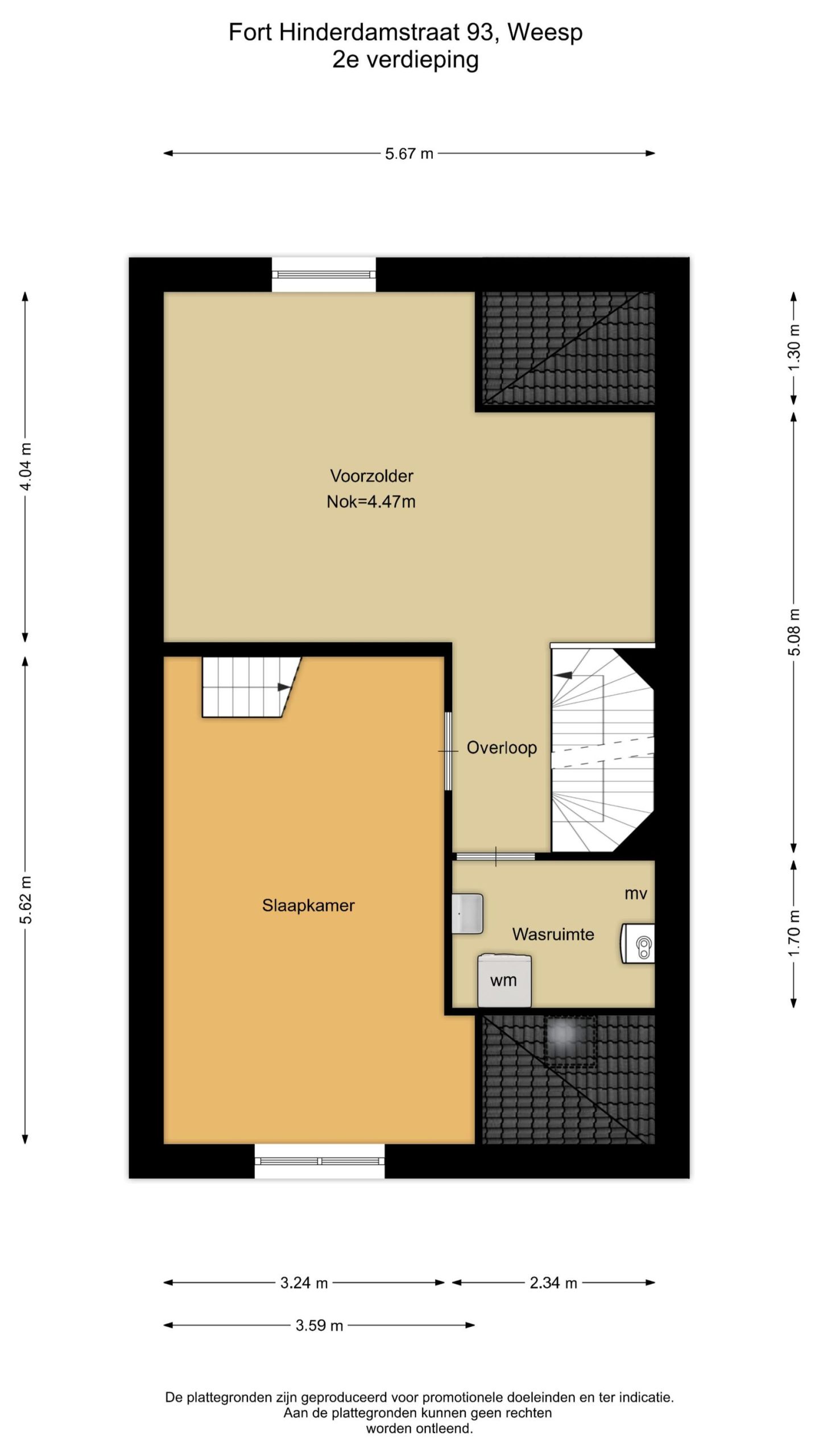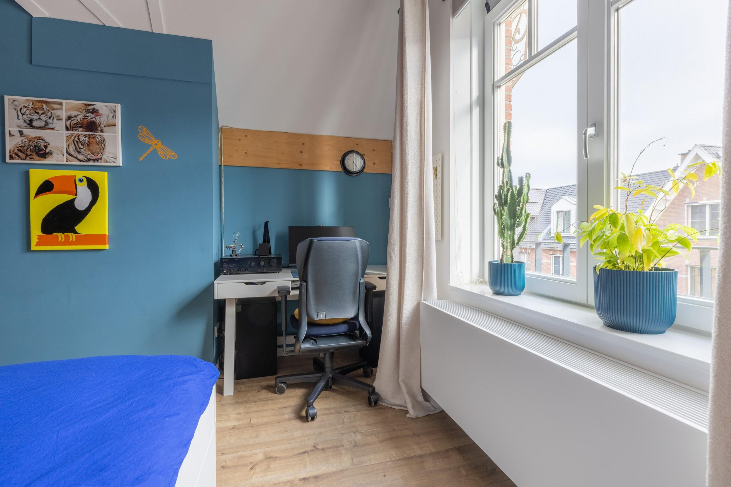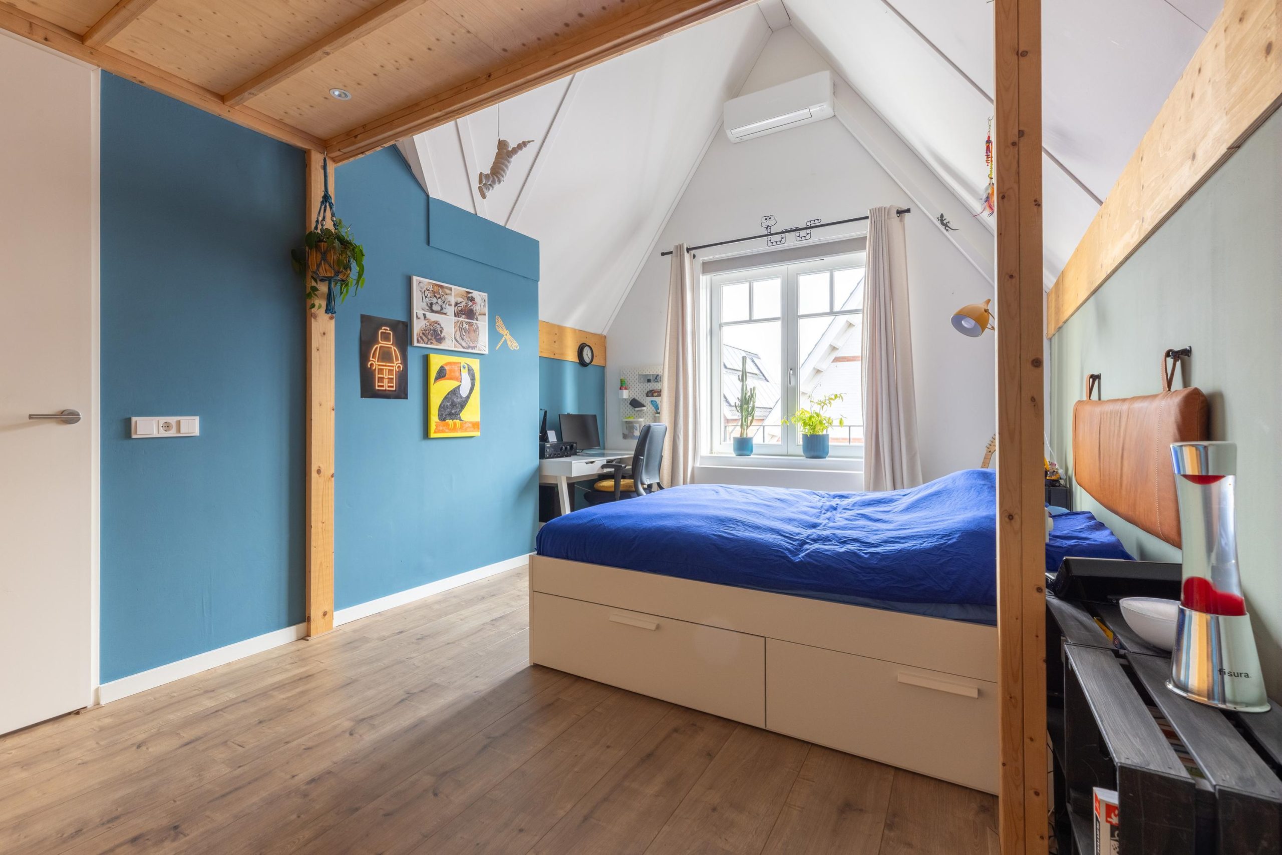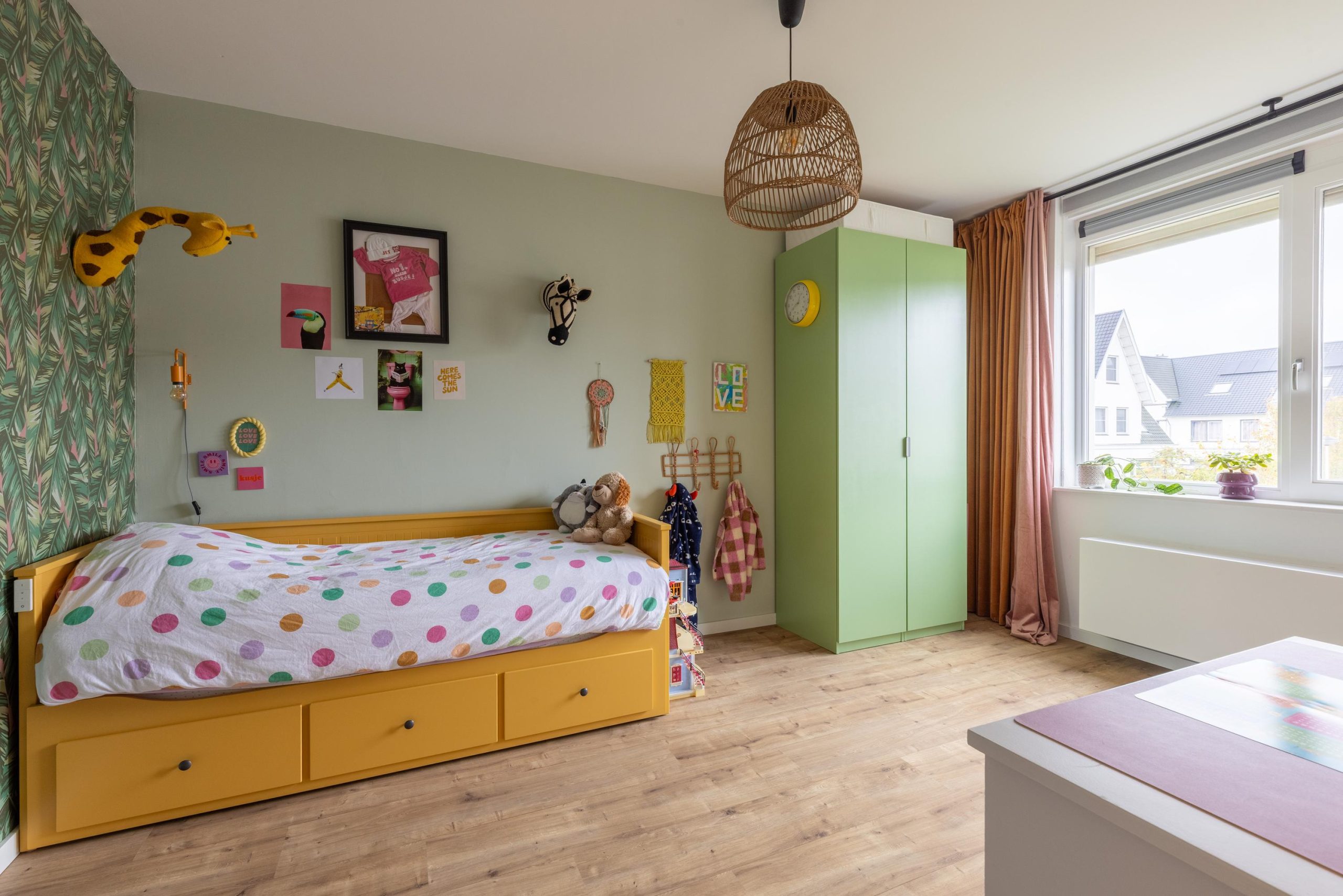 Tweede verdieping: Overloop met technische ruimte waarin zich de CV, omvormer van de zonnepanelen, mechanische ventilatie en de aansluiting voor wasmachine en droger. De Solartube zorgt voor daglicht toetreding. Aan de voorzijde vind je een riante slaapkamer met een leuke speel/slaapvide. De achterzijde is nu in gebruik als sportkamer. Hier kan eenvoudig een extra slaapkamer worden gecreëerd.