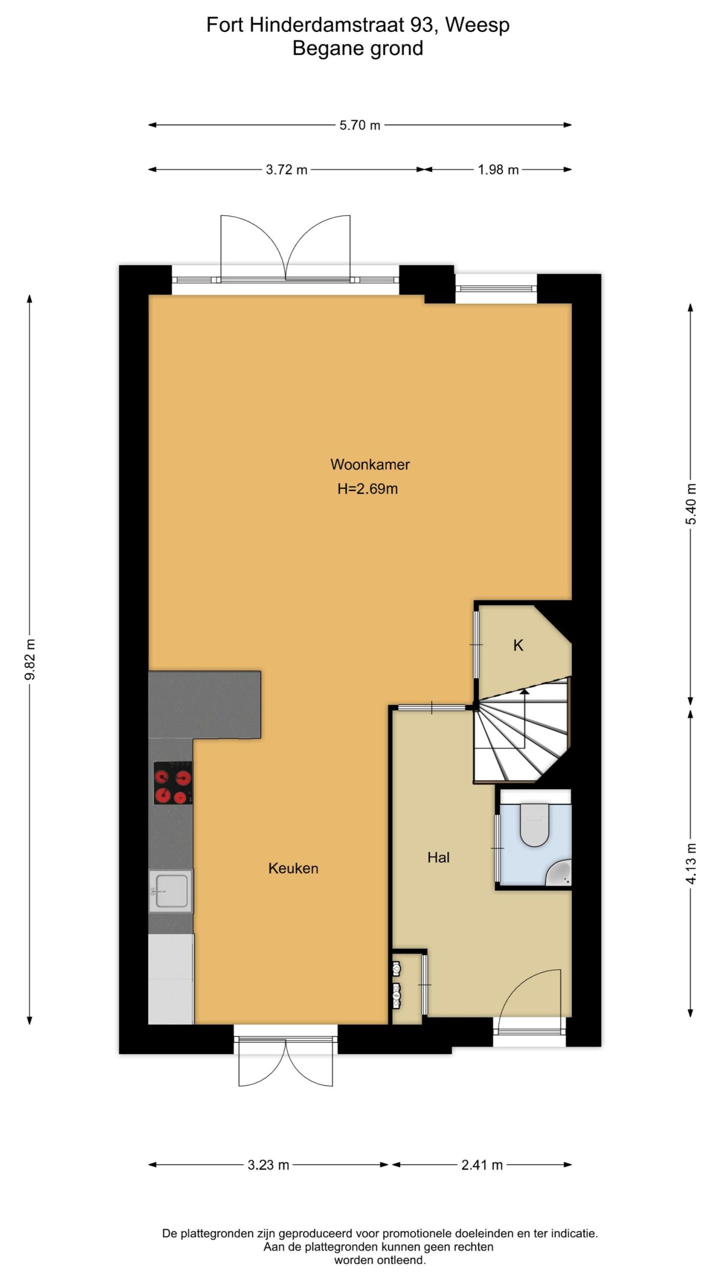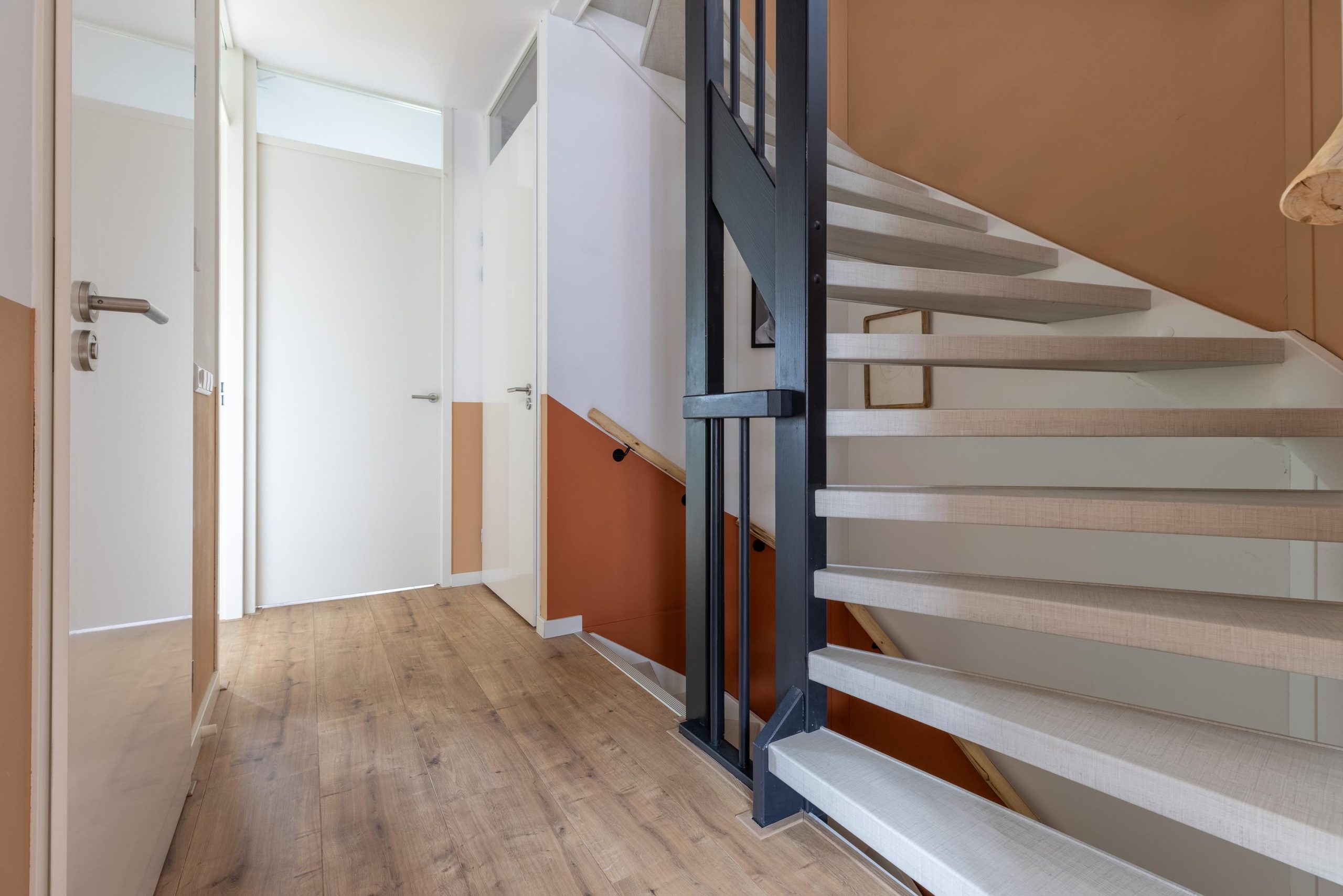 Begane grond: Voortuin, entree, hal met meterkast, modern toilet met fonteintje en trap naar boven. Onder de trap bevindt zich een kast voor extra opbergruimte. De open keuken met schiereiland bevindt zich aan de voorzijde en is voorzien van alle denkbare inbouwapparatuur waaronder een koel/vriescombinatie, een combi-oven, vaatwasser en inductiekookplaat met geïntegreerde afzuigkap. Uiteraard mag een de Quooker niet ontbreken. Er zijn openslaande deuren naar de voortuin. Aan de achterzijde van het huis vind je de woonkamer met openslaande deuren naar de zonnige achtertuin met achterom.