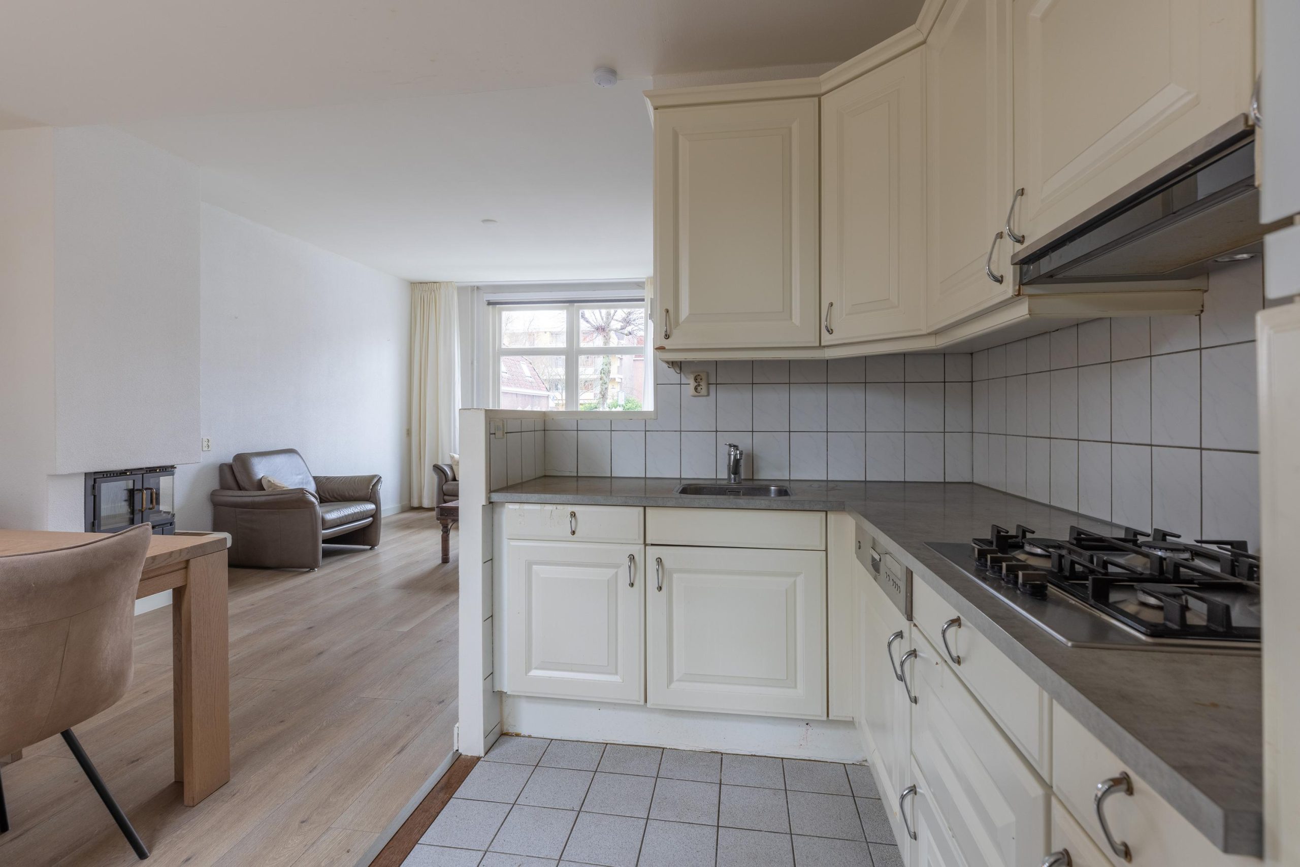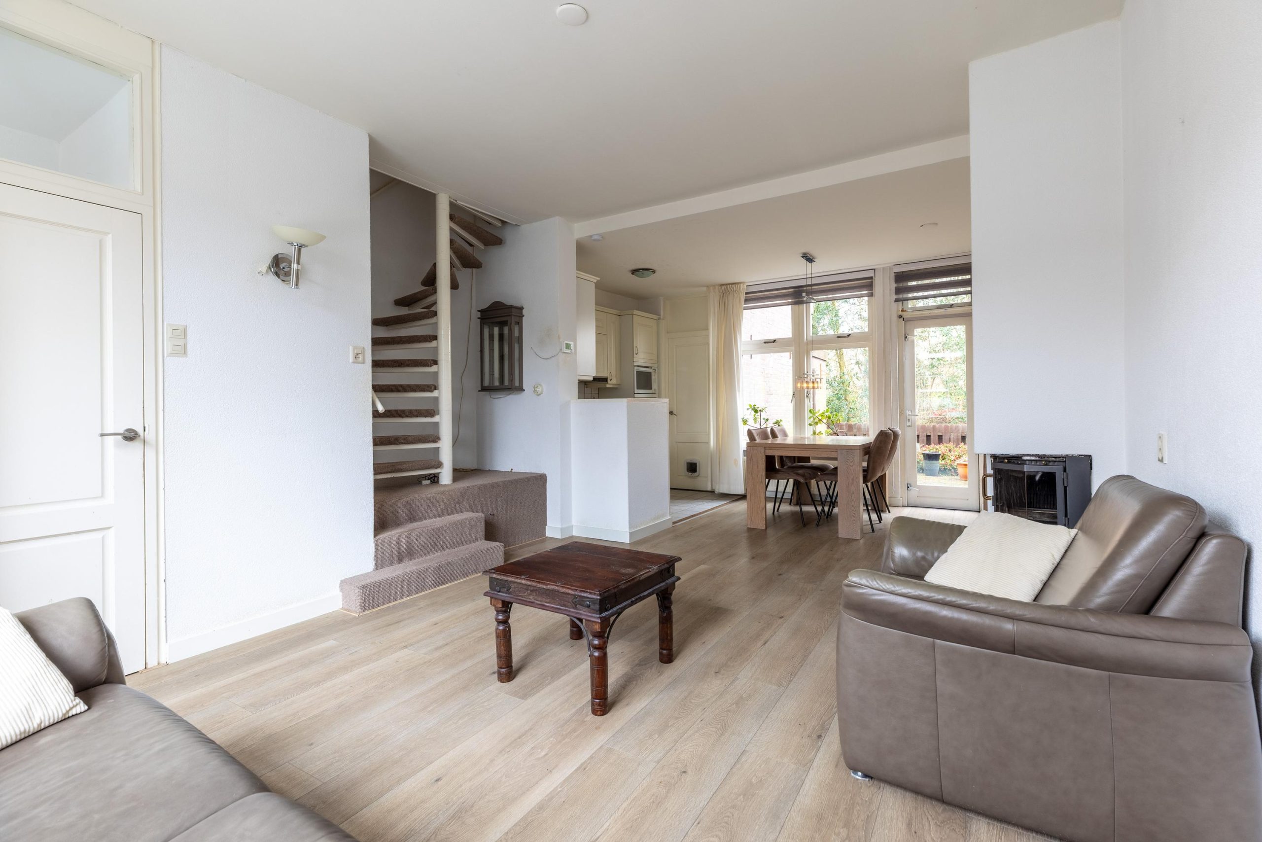 De woonkamer is prettig licht dankzij de gunstige raampartijen en biedt voldoende ruimte voor een functionele indeling. De inzet houtkachel vormt een praktisch en sfeervol element binnen de ruimte. Aansluitend bevindt zich de open keuken, die de mogelijkheid biedt voor modernisering naar eigen smaak en wensen. De bijkeuken geeft extra voorraadruimte. Vanuit de woonkamer is er directe toegang tot de tuin op het zuidwesten met berging.