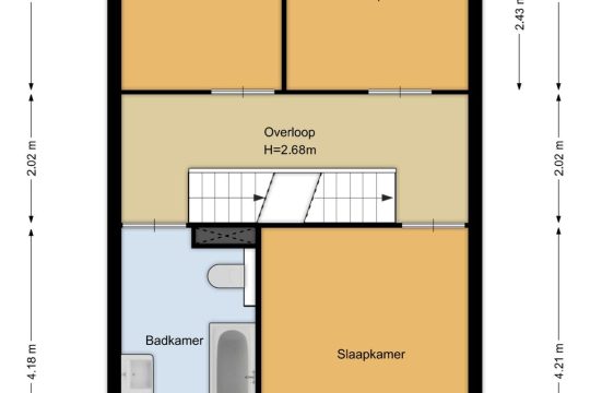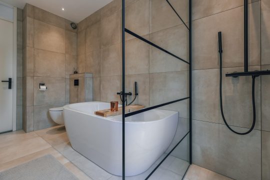 Royale overloop, master bedroom aan de voorzijde met grote raampartijen met twee Franse balkons, twee slaapkamers aan de achterzijde. De riante en strakke badkamer (uit 2020) bevindt zich aan de voorzijde en is voorzien van daglicht. Er is een inloopdouche met hand/regendouche, een semi-vrijstaand ligbad, tweede toilet en een dubbel wastafelmeubel.