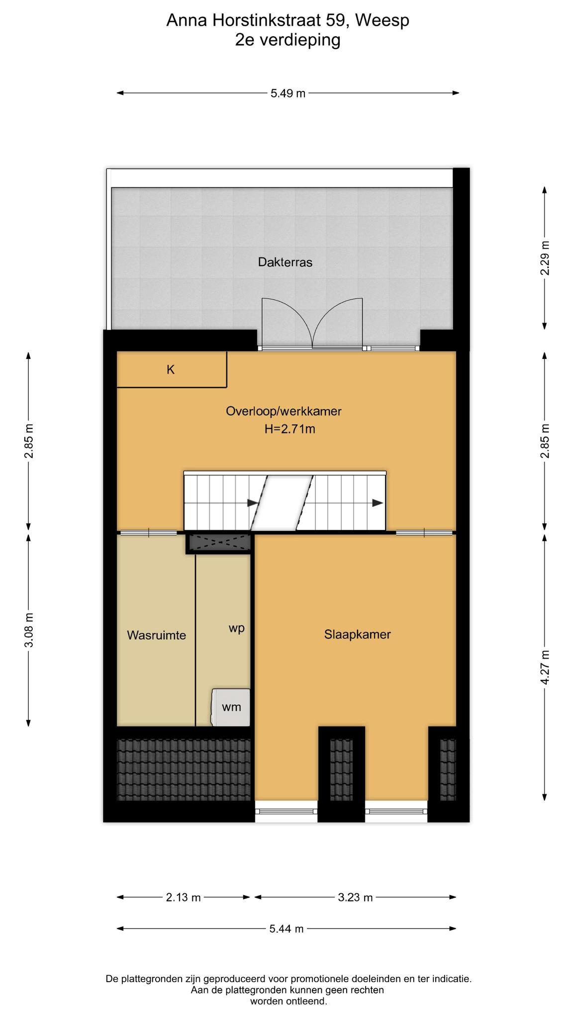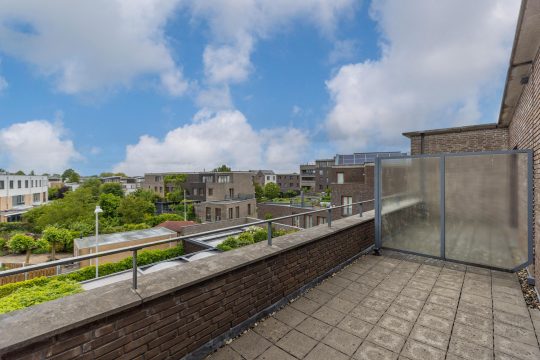 Op de tweede verdieping bevindt zich het dakterras van 13 m². Hier kan je met name ’s avonds heerlijk zitten en genieten van de ondergaande zon. Er is eventueel een mogelijkheid om het dakterras bij de woning te trekken.
