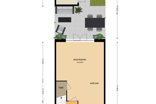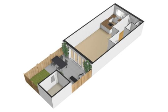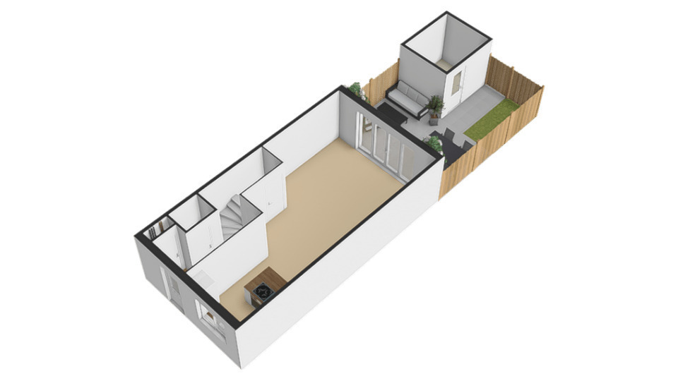 • Veel lichtinval dankzij grote raampartijen en openslaande deuren