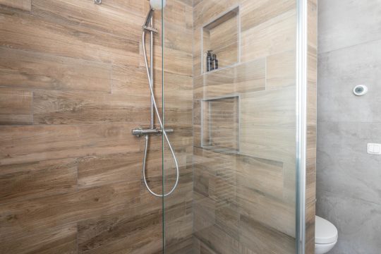 Op deze verdieping bevinden zich drie slaapkamers van verschillende afmetingen en een moderne badkamer met vloerverwarming, inloopdouche, tweede toilet en een dubbel wastafelmeubel.