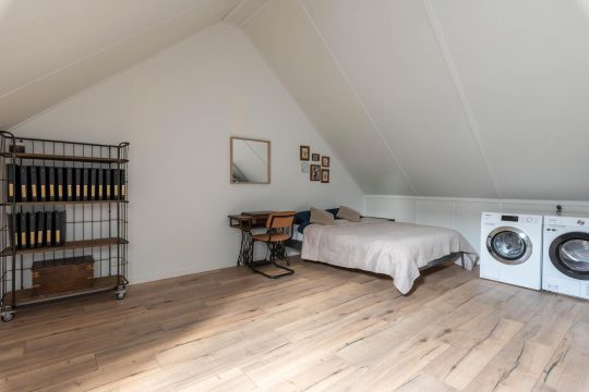 De ruime zolder biedt volop mogelijkheden. Momenteel is deze ingericht als vierde slaapkamer, maar eenvoudig uit te breiden met een of meerdere dakkapellen voor extra (slaap)kamers of een thuiswerkplek. Hier vind je tevens de aansluitingen voor wasmachine en droger en de cv-ketel.