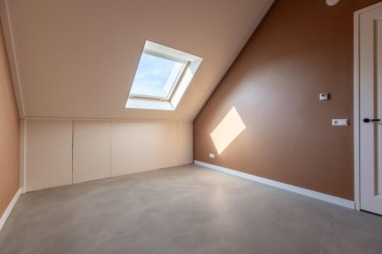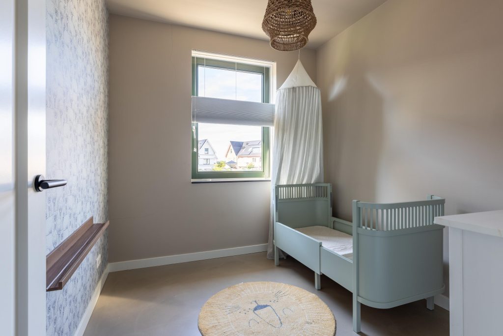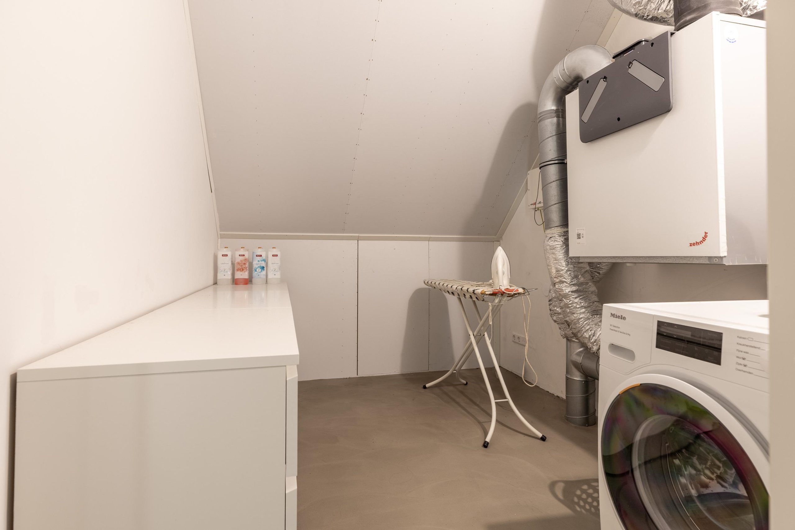 Tweede verdieping: twee in grootte variërende slaapkamers en een technische ruimte waar zich ook de wasmachineaansluiting bevindt.
