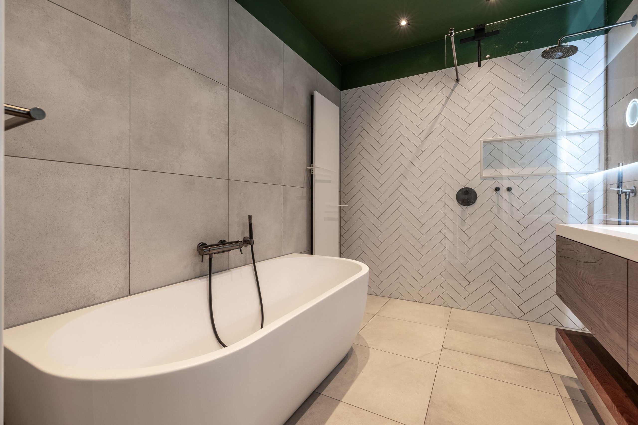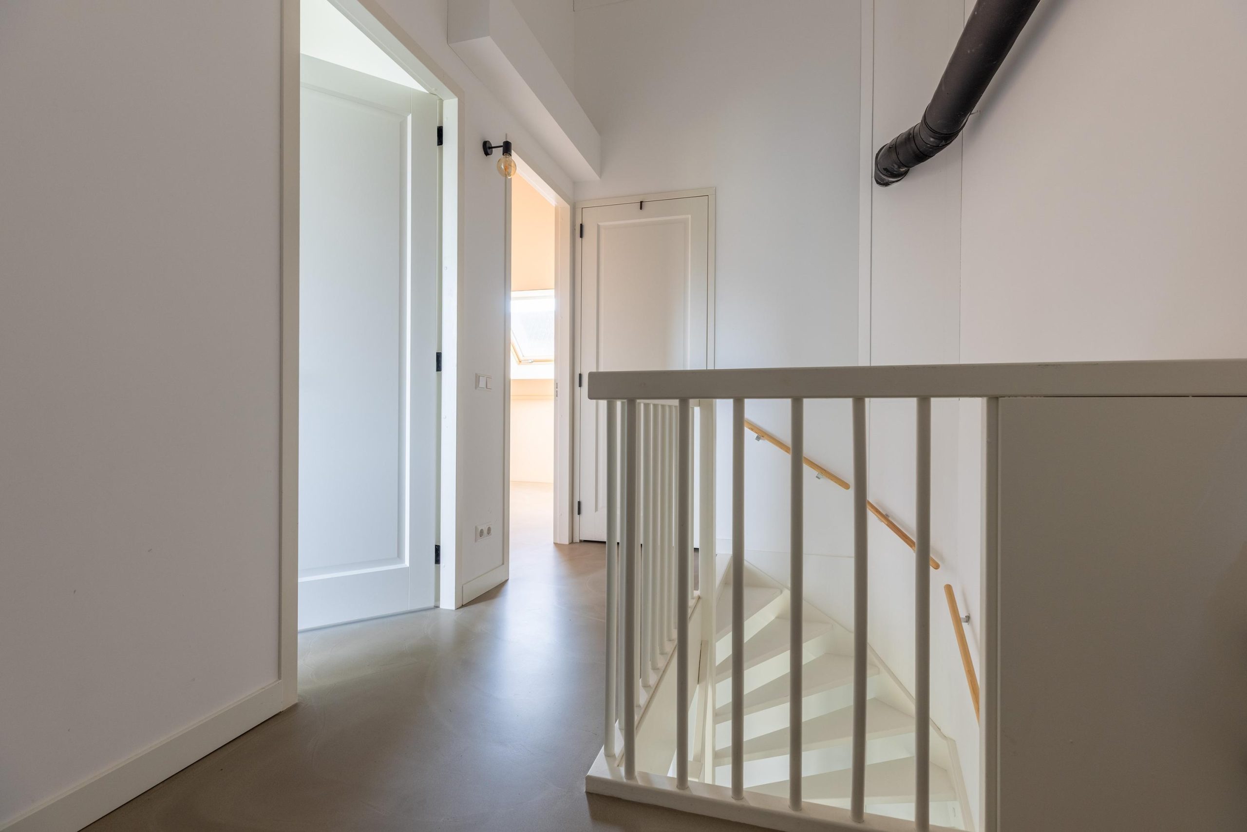 Eerste verdieping: overloop met drie in grootte variërende slaapkamers waarvan de slaapkamer aan de voorzijde voorzien is van een ruime inbouwkast. De badkamer is voorzien van een inloopdouche, een ligbad, wastafelmeubel en een toilet.