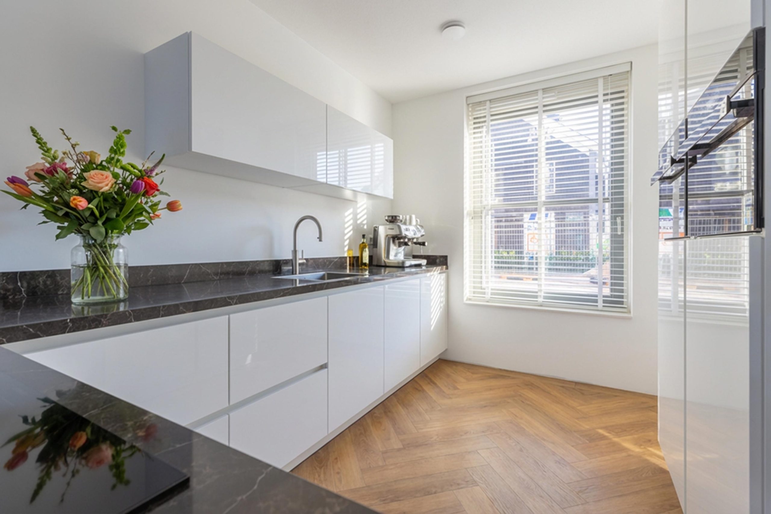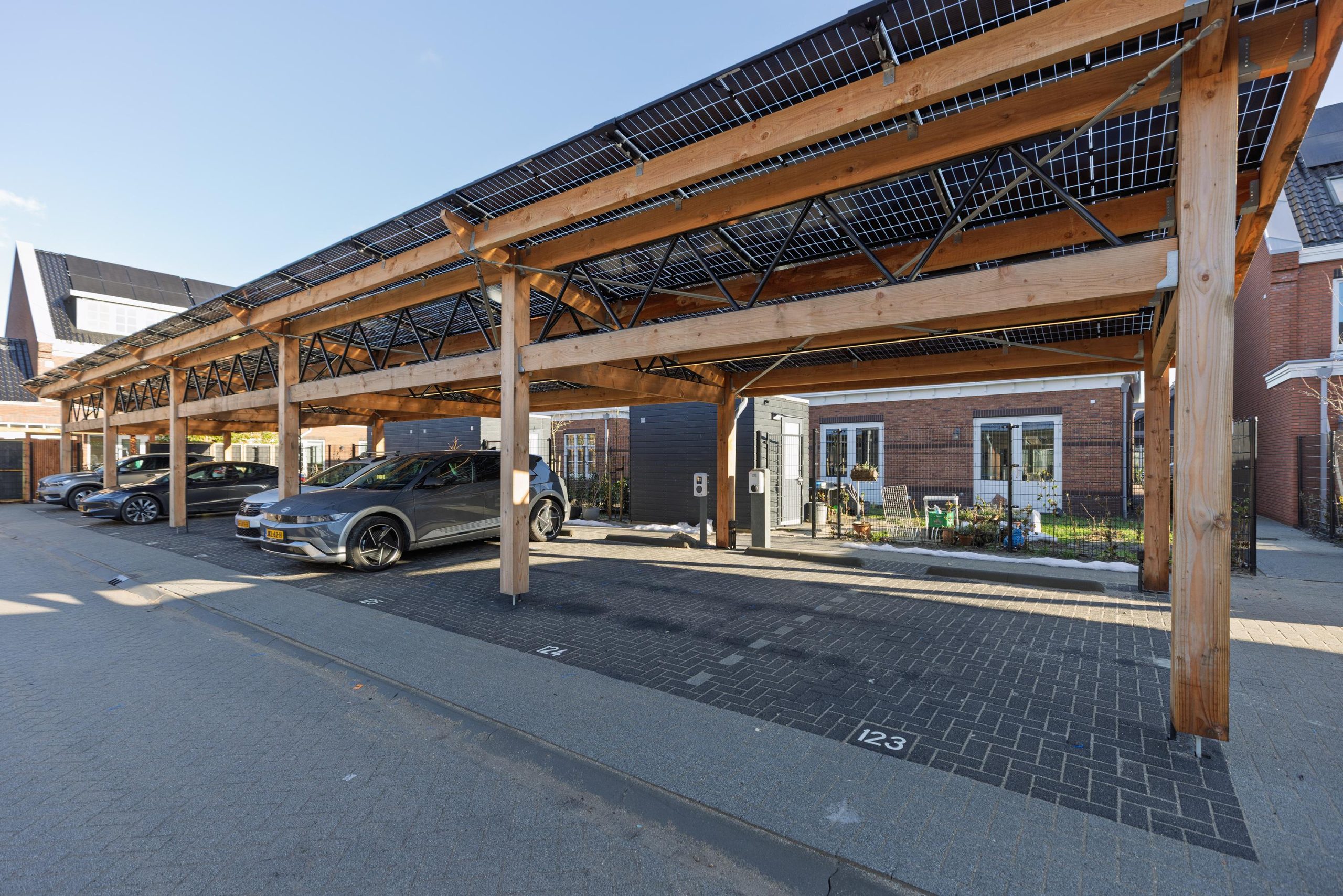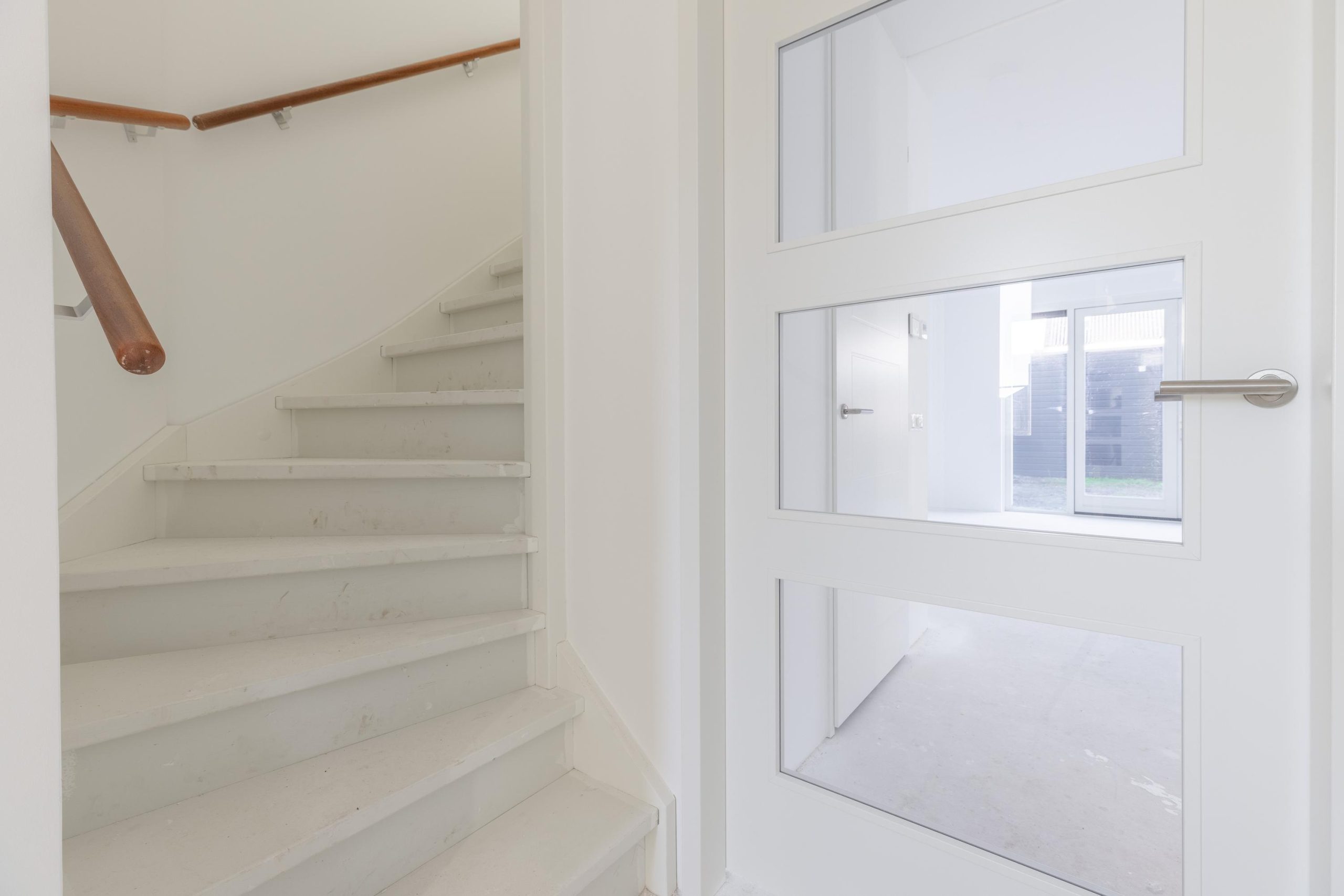 Begane grond: Entree, hal met meterkast, modern toilet met fonteintje en trap naar boven. Ruime woonkamer met trapkast en openslaande deuren naar de tuin (noordwest) met achterom en berging. Op het mandelig terrein is er een eigen parkeerplaats met carport voorzien van zonnepanelen. Aan de voorzijde bevindt zich de luxe open keuken met de nodige Siemens inbouwapparatuur, waaronder een inductiekoopplaat met geïntegreerde afzuiging, vaatwasser, stoomoven en combi-magnetron. Uiteraard mag de Quooker niet ontbreken.