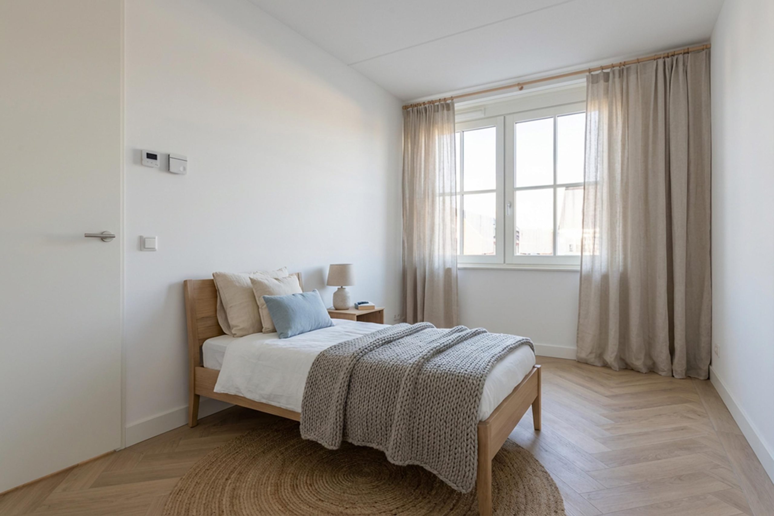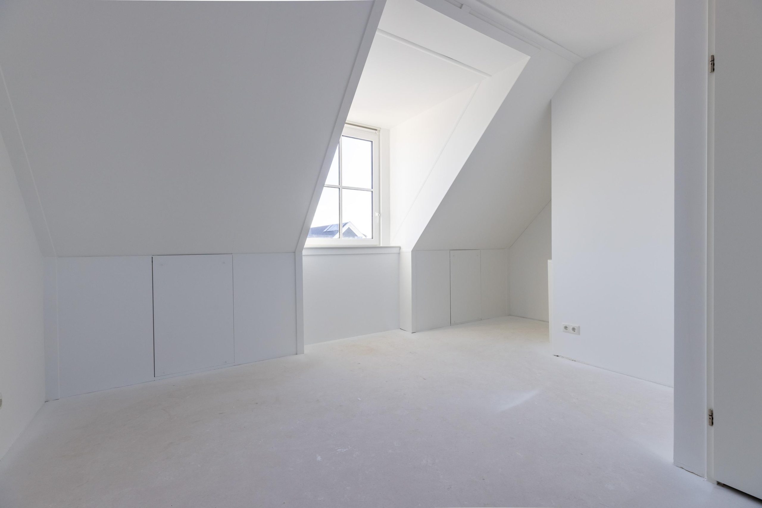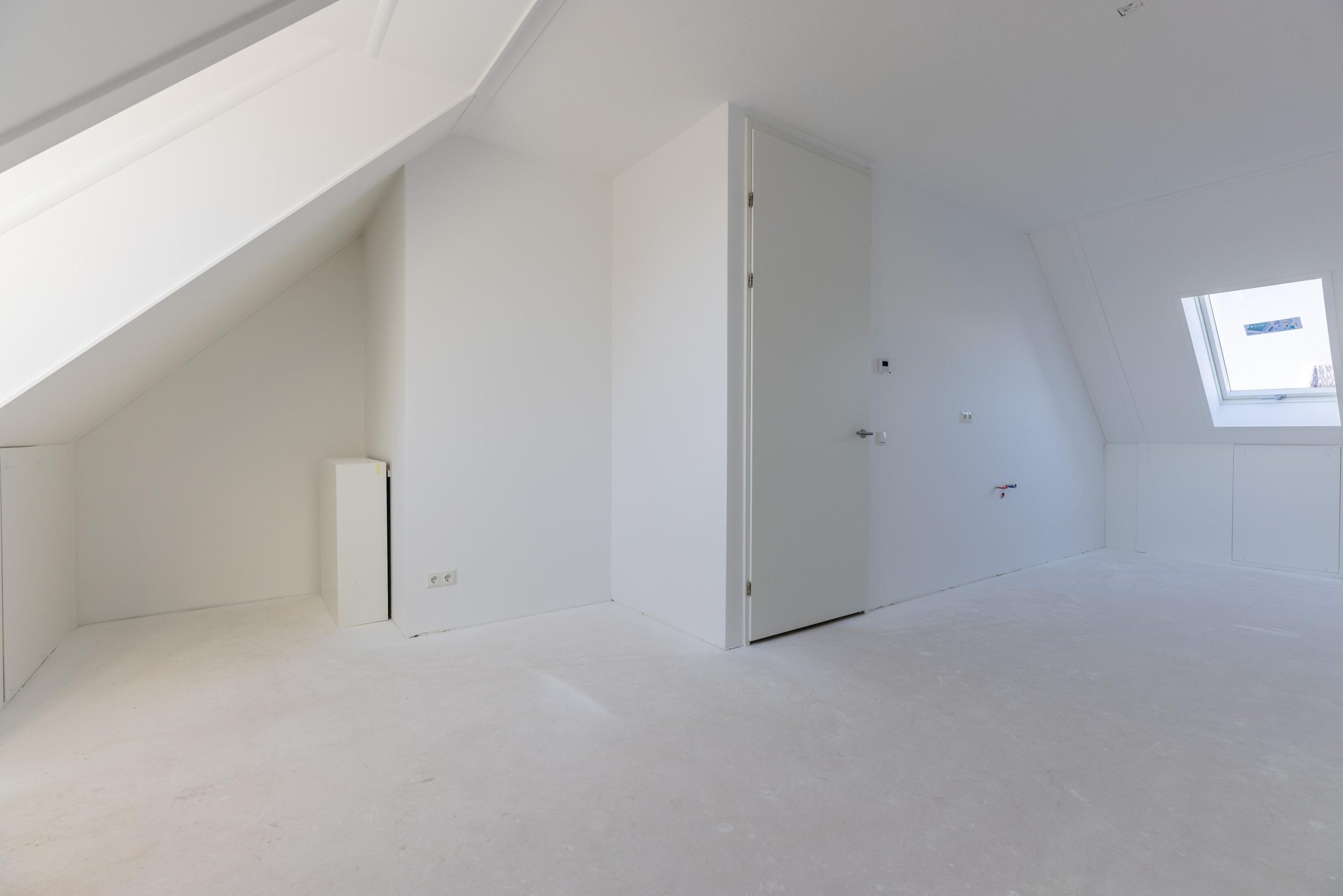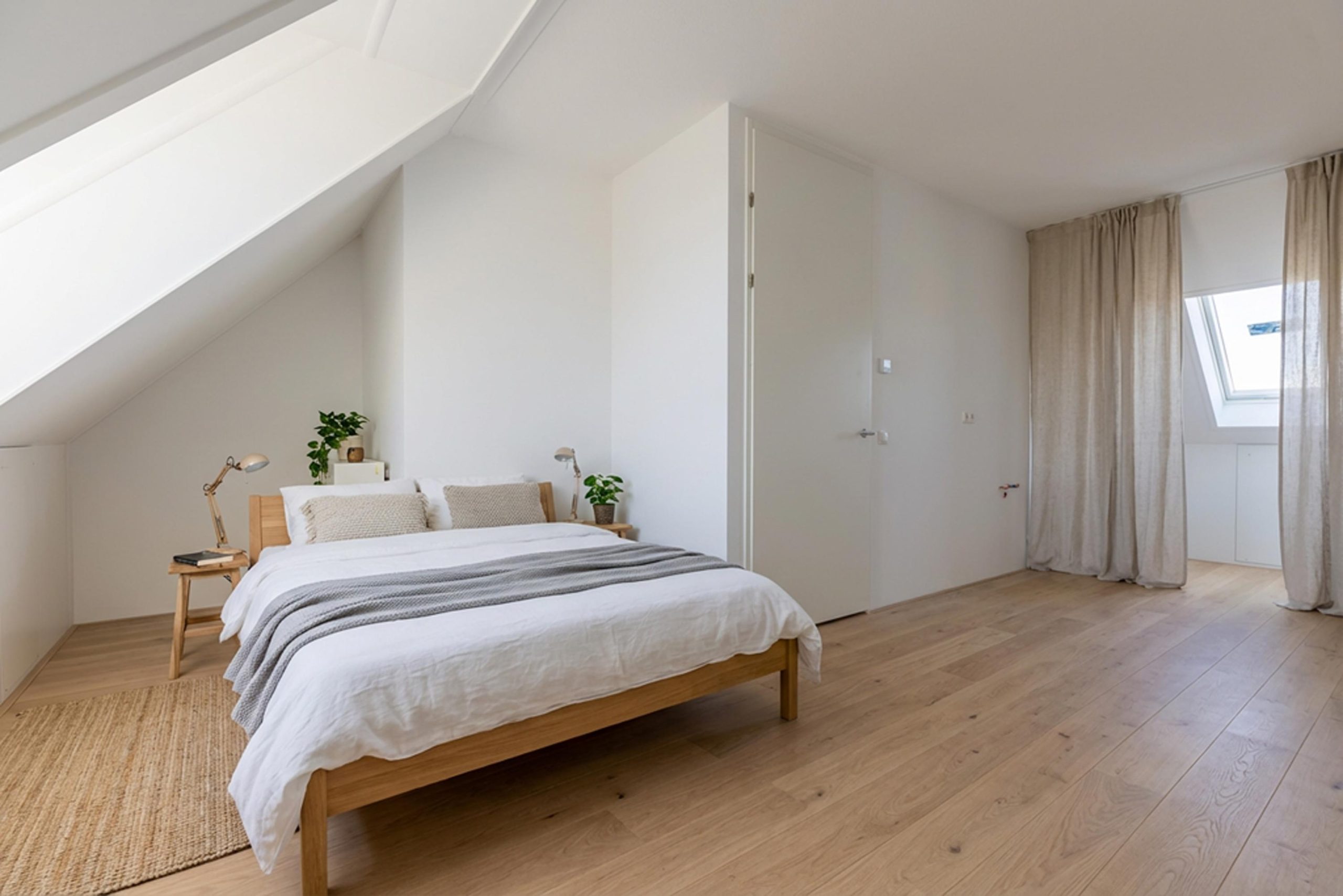 Tweede verdieping: Overloop met technische ruimte waarin zich de warmtepomp, boiler, omvormer van de zonnepanelen, mechanische ventilatie en de aansluiting voor wasmachine en droger zich bevinden. Er is een vierde riante slaapkamer over de gehele lengte van het huis. Deze is voorzien van dakkapel en dakraam. Tevens is een aansluiting voor een wastafel of kitchenette (koud en warm water). Hier kan eenvoudig een extra slaapkamer gerealiseerd worden.