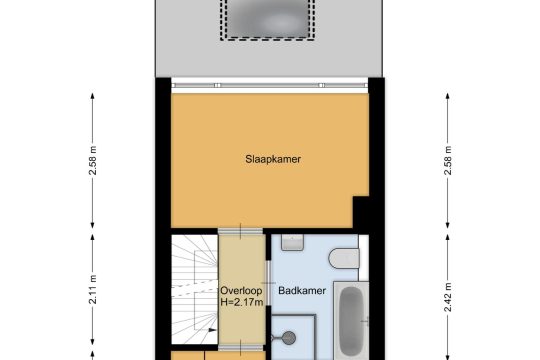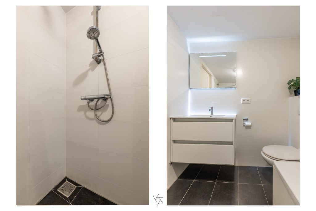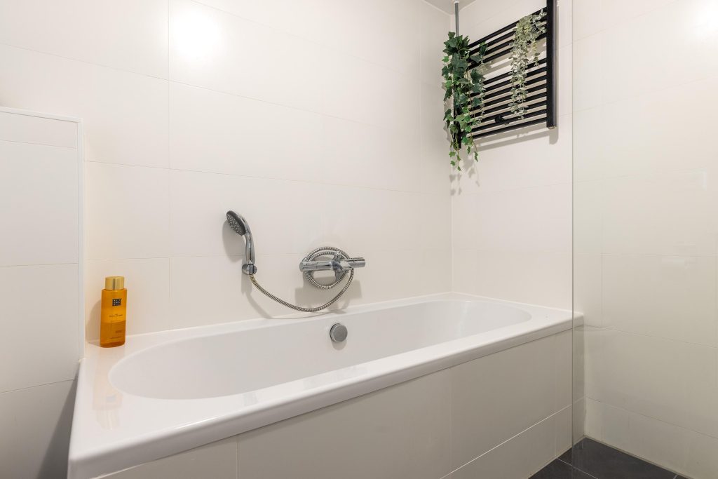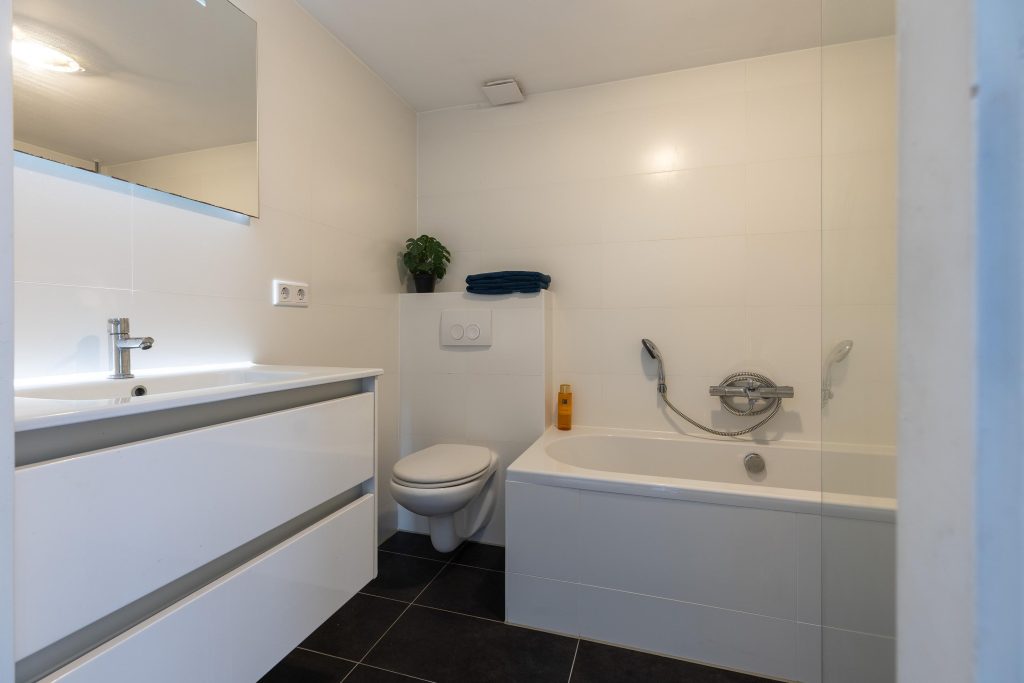 Via de trap in de woonkamer kom je op de overloop die toegang geeft aan de slaapkamer aan de voorzijde met kastenwand. Daar zit een handig kraantje aan de wand voor als je dorst mocht krijgen tijdens de nacht. Daarnaast geeft de overloop toegang tot de tweede slaapkamer aan de achterzijde, beide kamers zijn woningbreed. De moderne badkamer uit 2018 is voorzien van een inloopdouche, bad, wastafelmeubel, tweede toilet (vrijhangend) en designradiator.