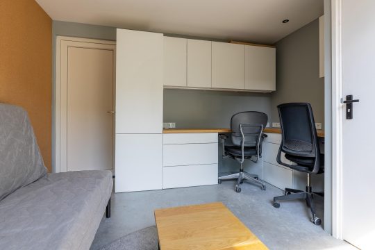 Achterin de tuin staat een fantastisch bijgebouw van 12 m², ideaal als tuinkantoor, praktijk, atelier of tuinkamer. Hier kan je in alle rust werken, studeren of gewoon relaxen. Het is volledig geïsoleerd en voorzien van een toilet, kraan, internet en koelkast.