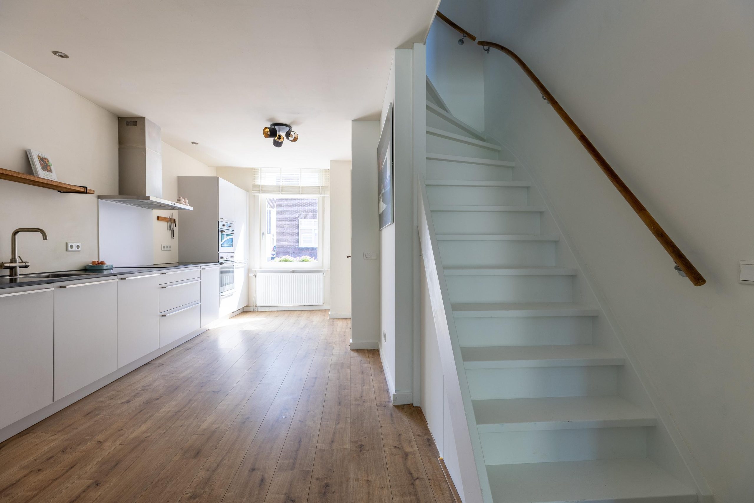 Entree, hal met originele bakstenen muur in het zicht, meterkast, toilet met fontein met hier ook een bakstenen muur en de toegang naar de lichte woon-/eetkamer. Aan de voorzijde bevindt zich de keuken (2018), voorzien van een vaatwasser, oven, combimagnetron, inductiekookplaat, afzuigkap en koel-/vriescombinatie.