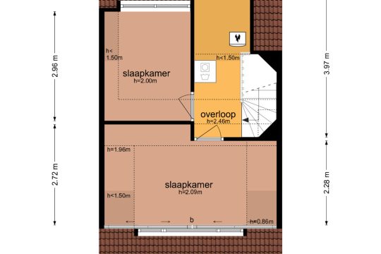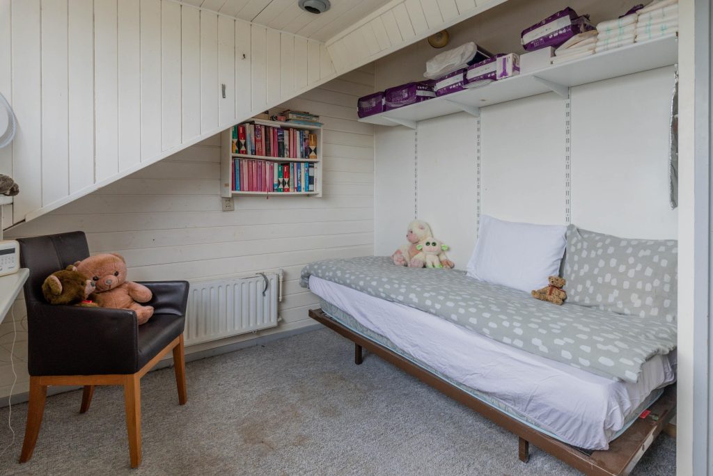 Overloop met cv-ketel en aansluiting voor wasmachine en droger. Slaapkamer met dakkapel aan de voorzijde en vierde slaapkamer, eveneens met dakkapel aan de achterzijde.