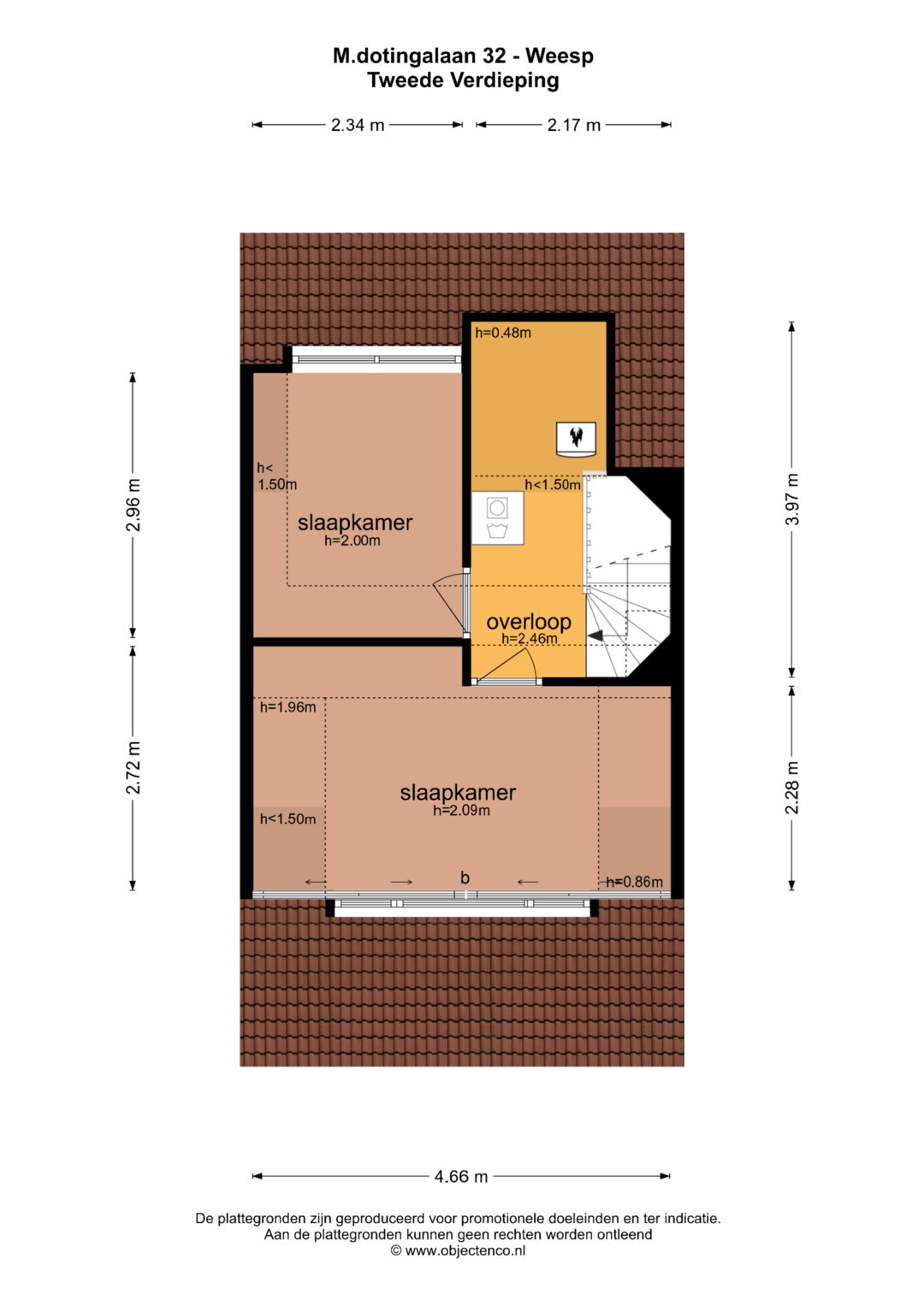 Overloop met cv-ketel en aansluiting voor wasmachine en droger. Slaapkamer met dakkapel aan de voorzijde en vierde slaapkamer, eveneens met dakkapel aan de achterzijde.