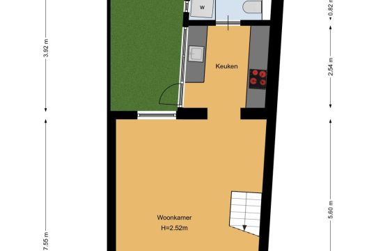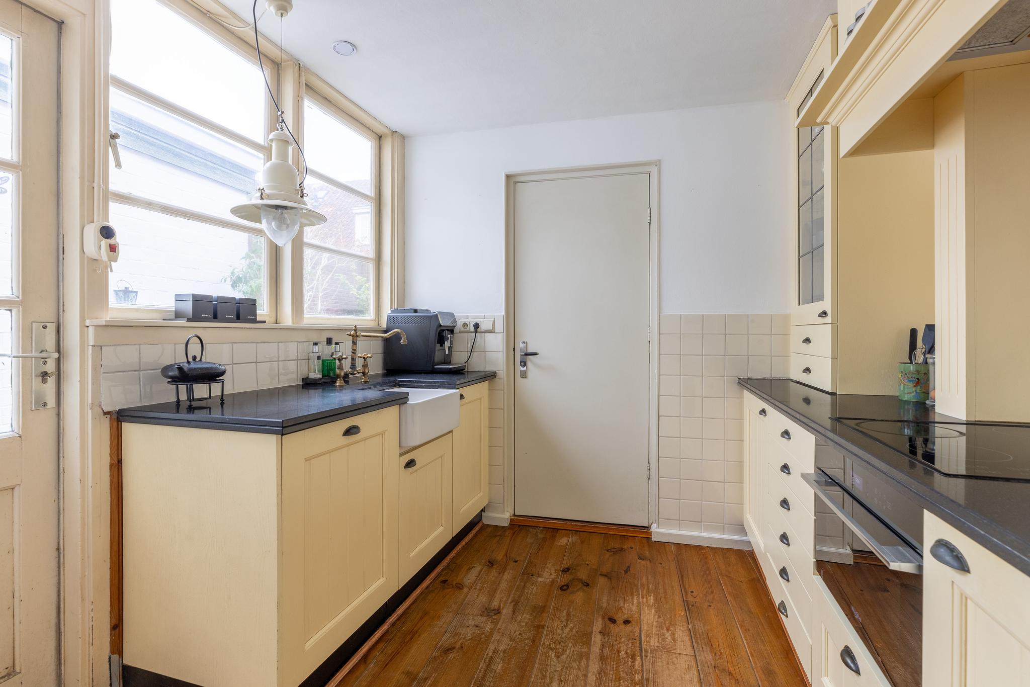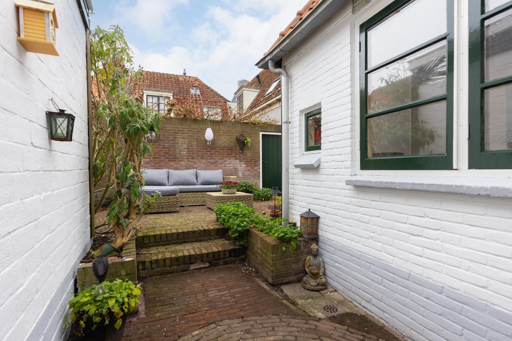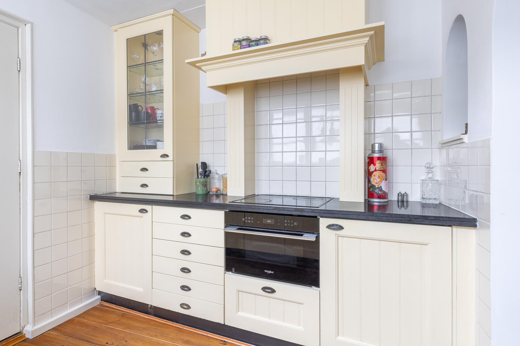 Entree met meterkast en toegang tot de gezellige woonkamer. De keuken bevindt zich aan de achterzijde, waarbij de koelkast, vaatwasser en oven recent zijn vernieuwd. Achter de keuken bevindt zich het toilet en een kast met daarin de aansluiting voor de wasmachine. Hierdoor is de wasmachine netjes weggewerkt. Via de keuken bereik je de fraai aangelegde achtertuin met achterom.