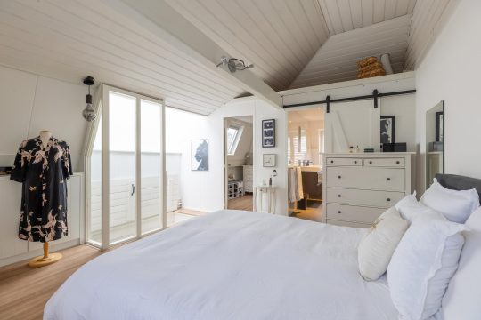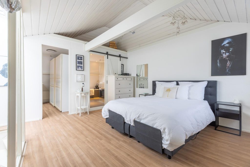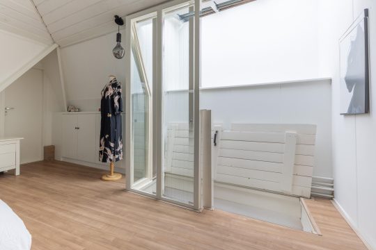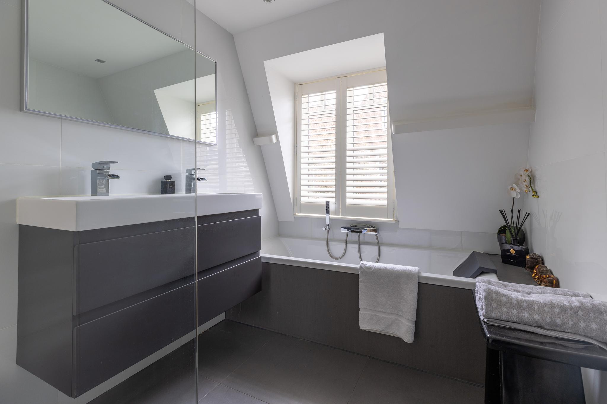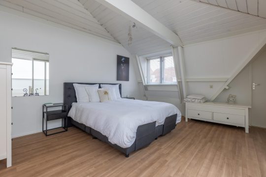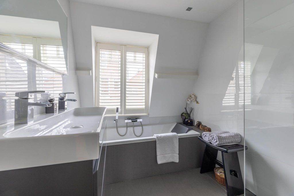 Ruime slaapkamer met dakkapel en schuifdeur naar de moderne badkamer (eind 2019) eveneens voorzien van een dakkapel en ligbad, wastafelmeubel met dubbele kraan en inloopdouche. Daarnaast vind je een tweede slaapkamer. Aan de achterzijde bevindt zich de technische ruimte met CV (2021) en extra opbergruimte.