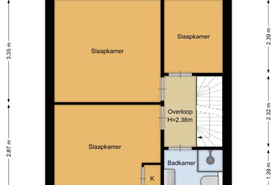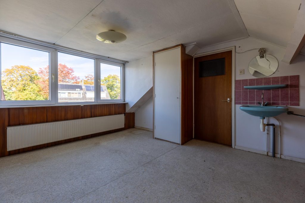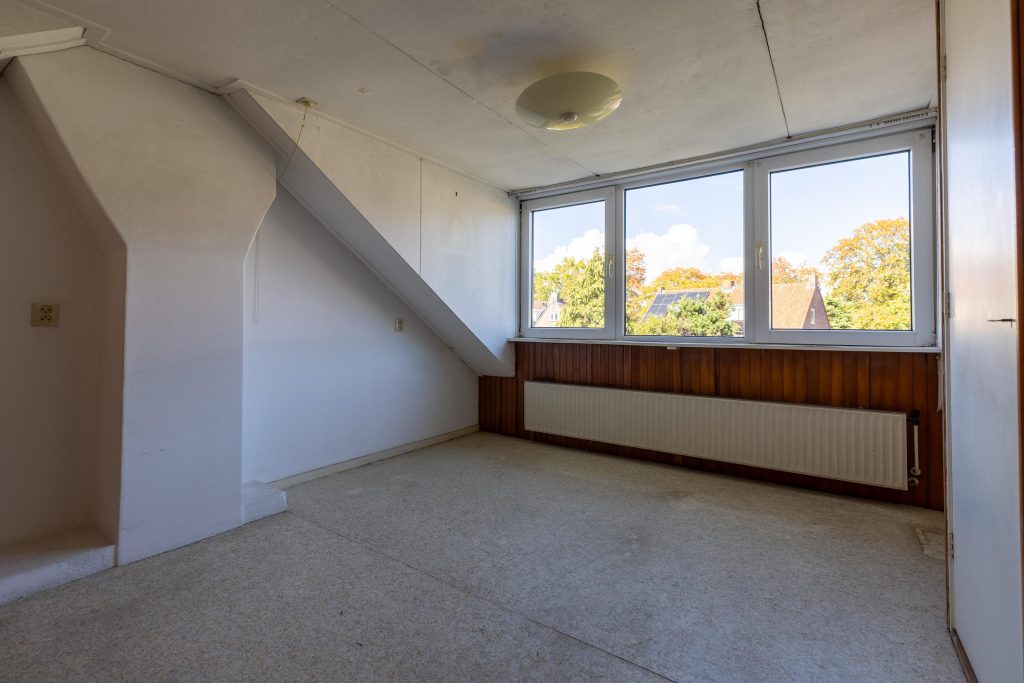 Overloop, drie in grootte variërende slaapkamers (de kamer aan de voorzijde is voorzien van een vaste kast). De gerenoveerde badkamer heeft een vrijhangend toilet, wastafelmeubel, radiator en douche.