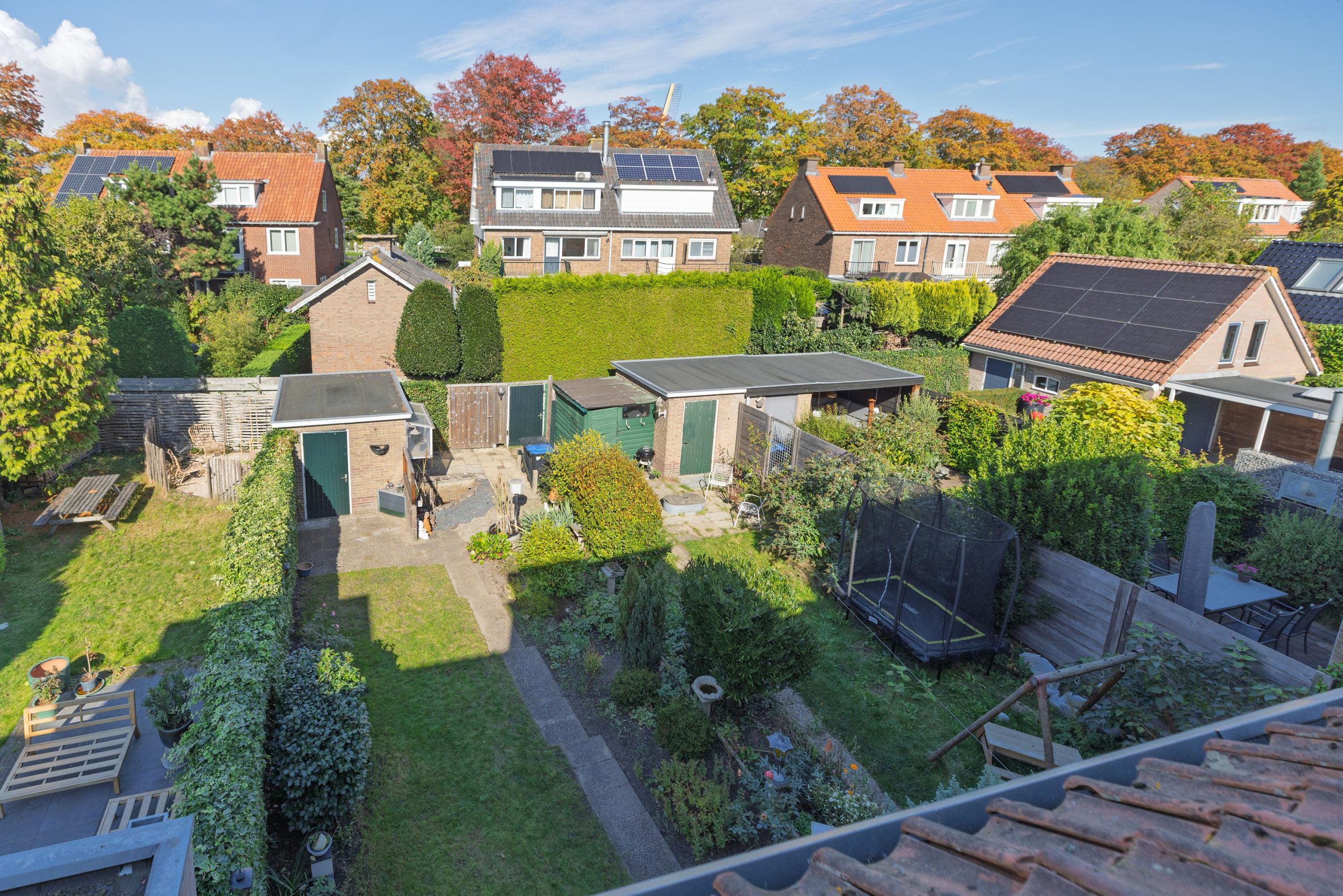 o Diepe achtertuin (17 meter) op het noorden met schuur en achterom