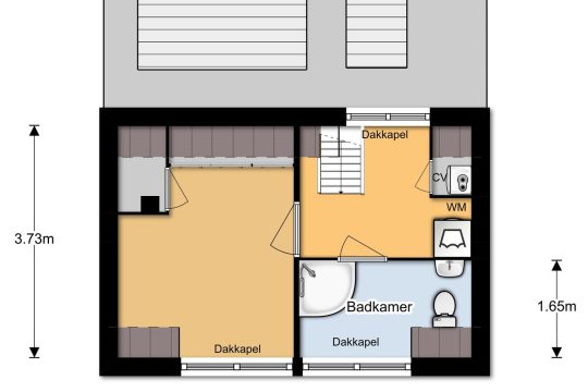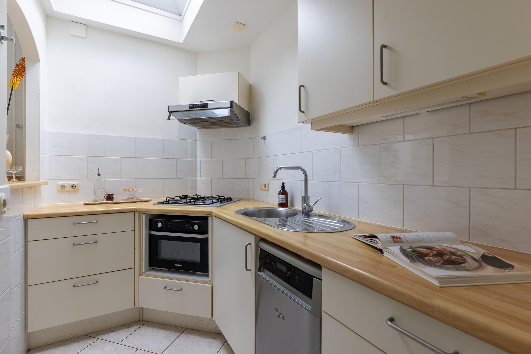 Binnen vind je een sfeervolle woonkamer met open haard – perfect voor knusse avonden. De halfopen keuken is voorzien van een 4-pits gaskookstel, koelkast, magnetron en afzuigkap. Een brede lichtkoepel zorgt voor veel natuurlijk licht. De woning beschikt verder over een nette badkamer met douchecabine, wastafel en tweede toilet. Boven is een royale slaapkamer met praktische opbergmogelijkheden, waaronder een vliering.
