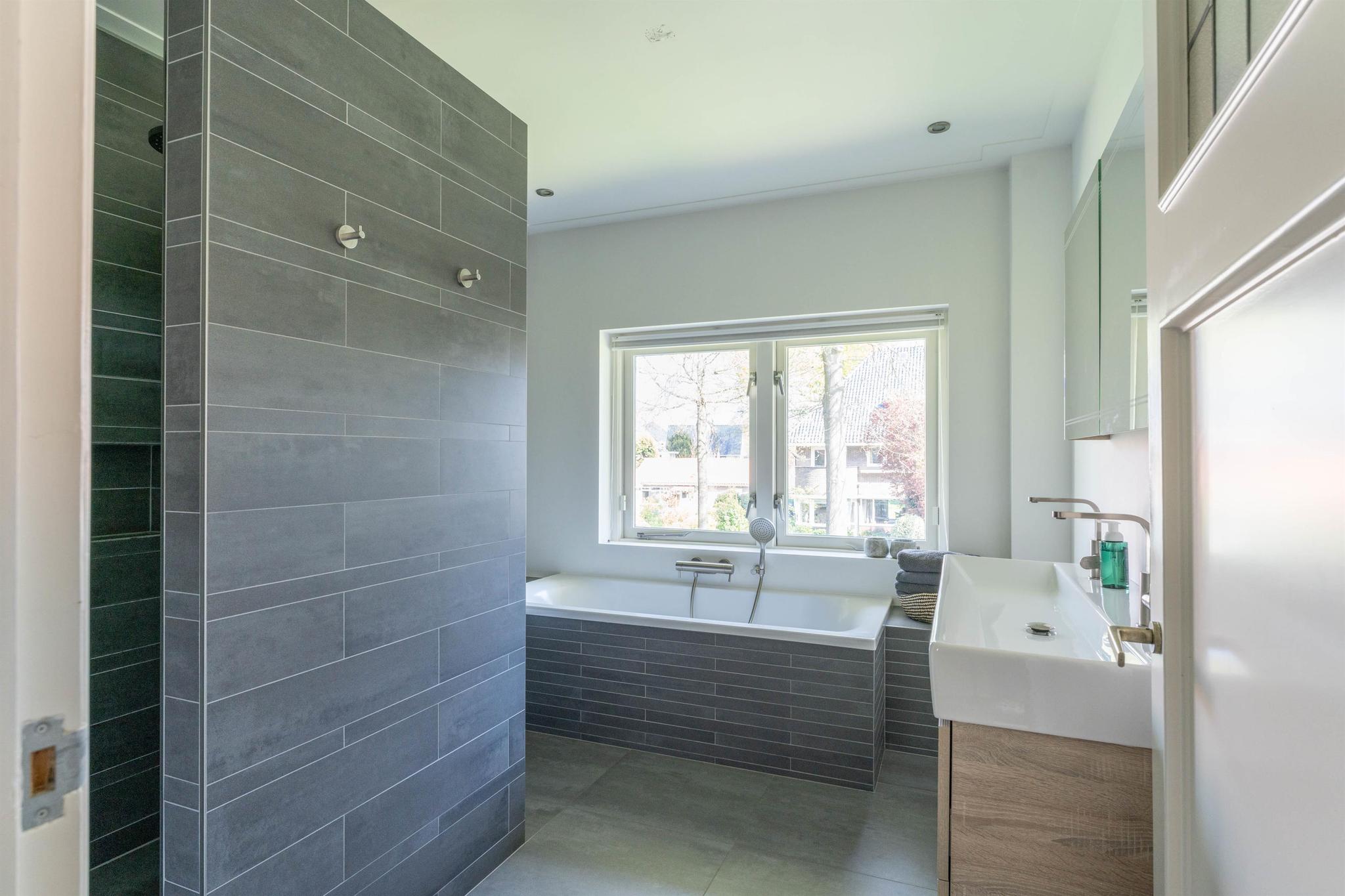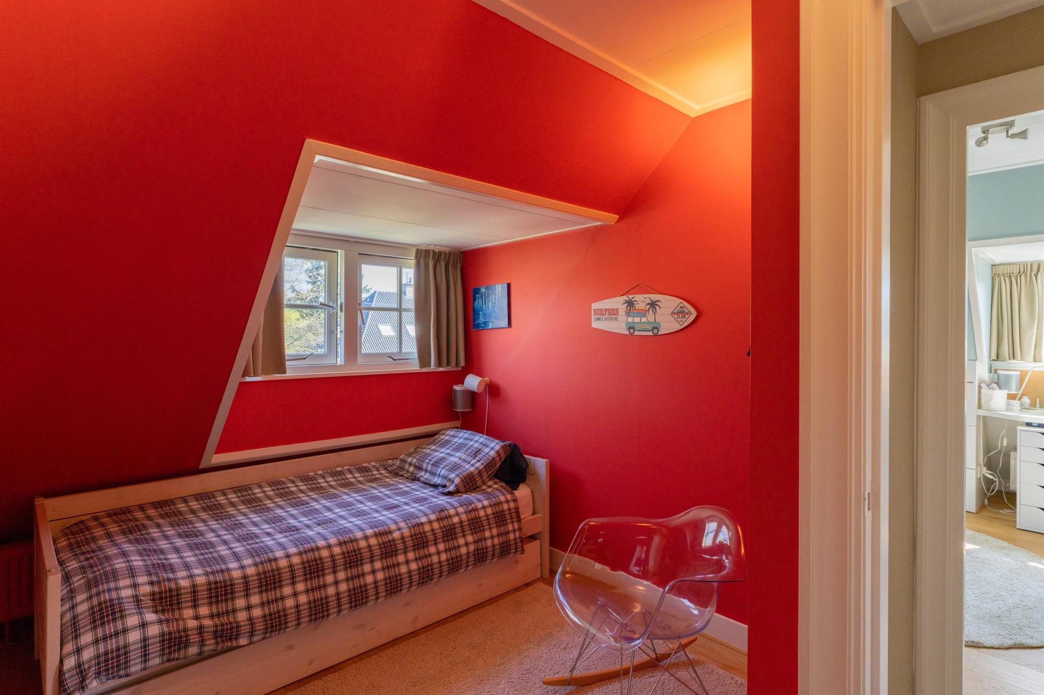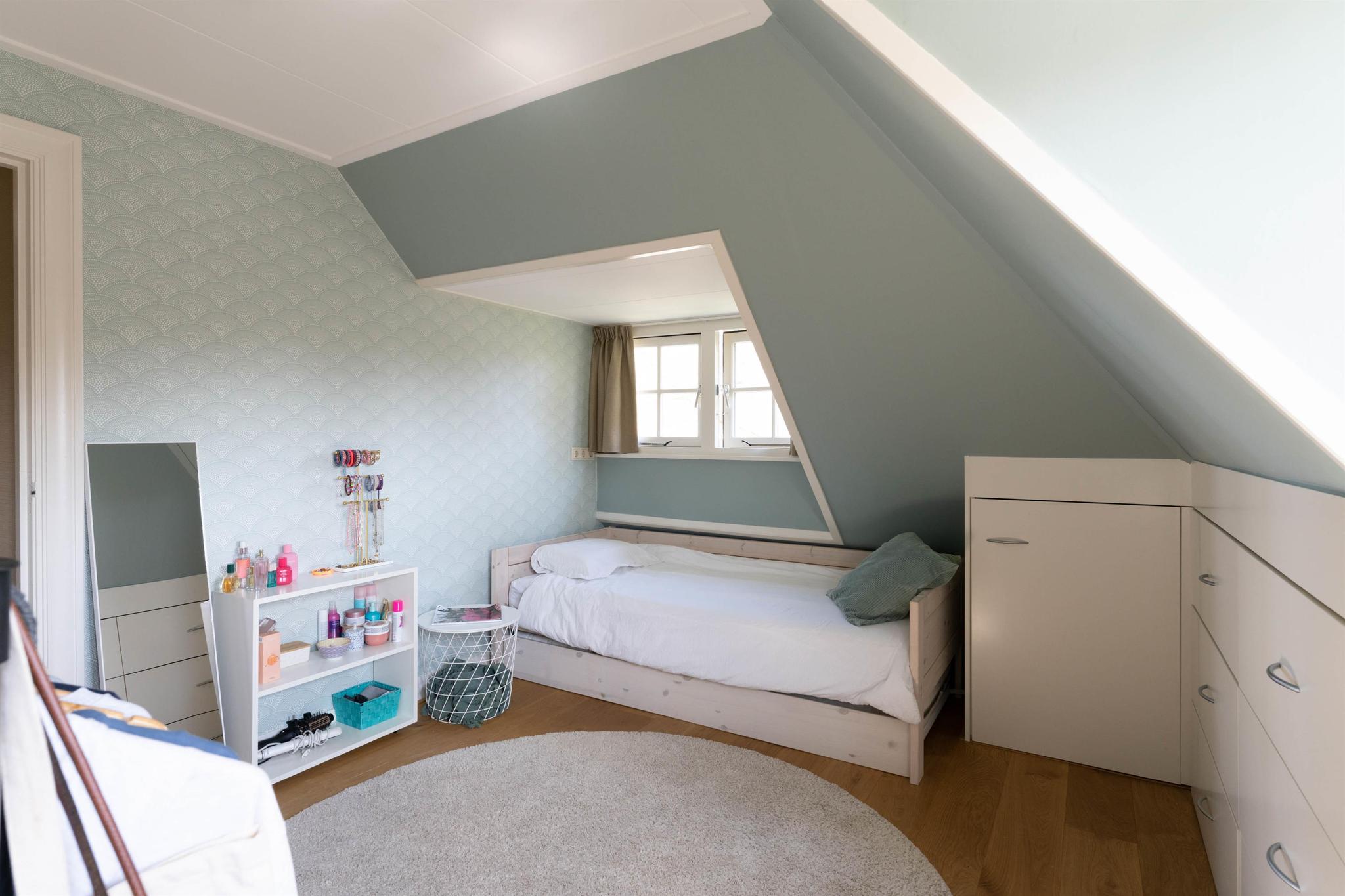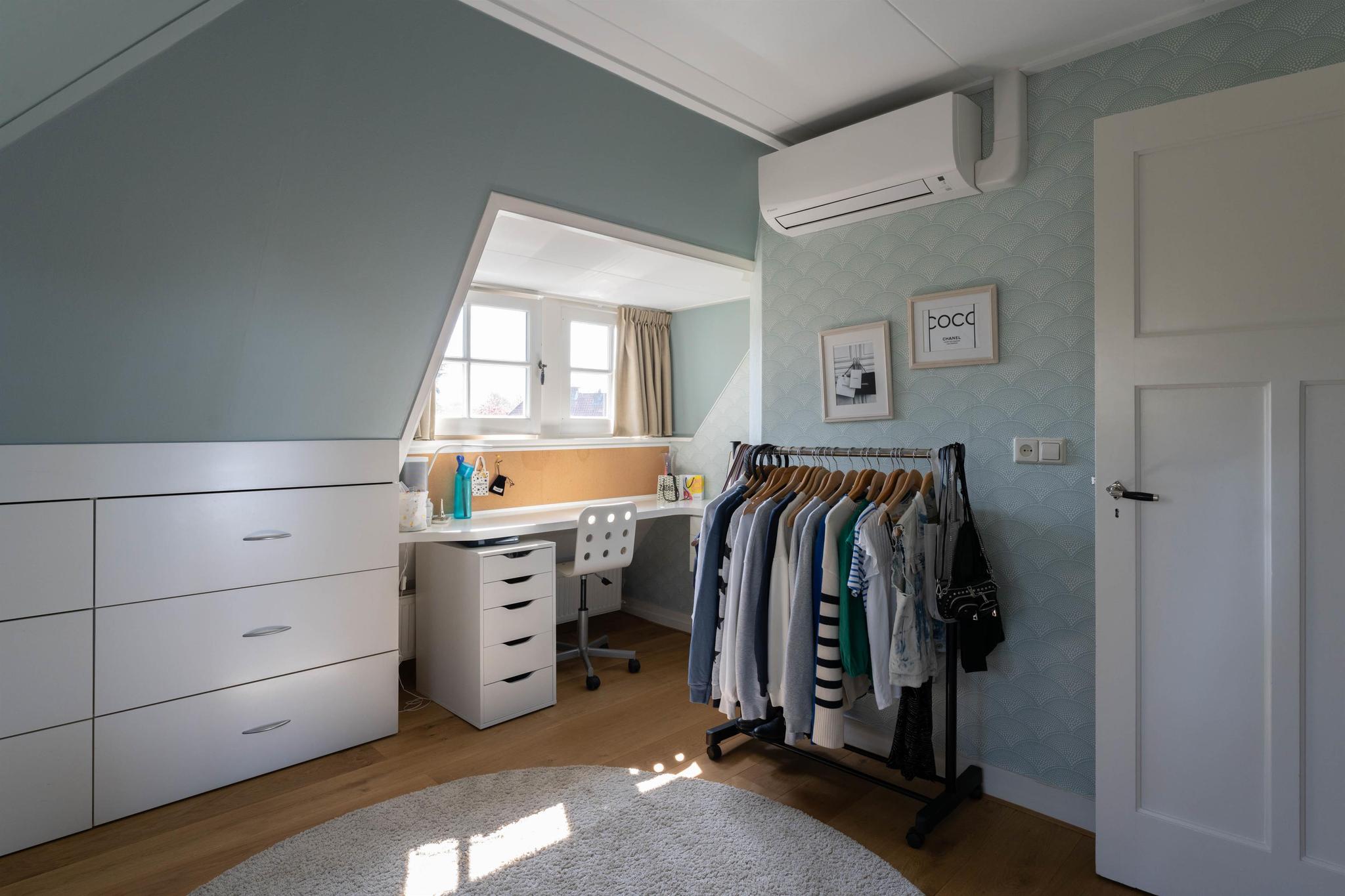Overloop, tweede moderne badkamer (2020) voorzien van vloerverwarming, douchecabine, hangend toilet en wastafelmeubel. Vierde slaapkamer aan de achterzijde met vaste kasten, dakkapel, dakraam en wastafel, vijfde slaapkamer aan de voorzijde met twee dakkapelletjes en vaste kasten en tenslotte een zesde slaapkamer met vlizotrap naar de bergvliering. Alle kamers op deze verdieping zijn voorzien van airconditioning en recent (2023) zijn alle ramen hier voorzien van dubbel glas.