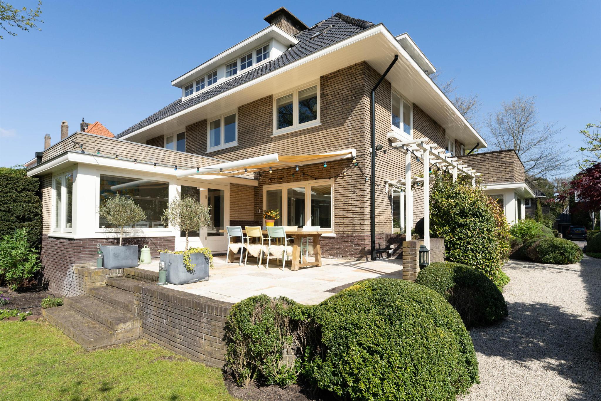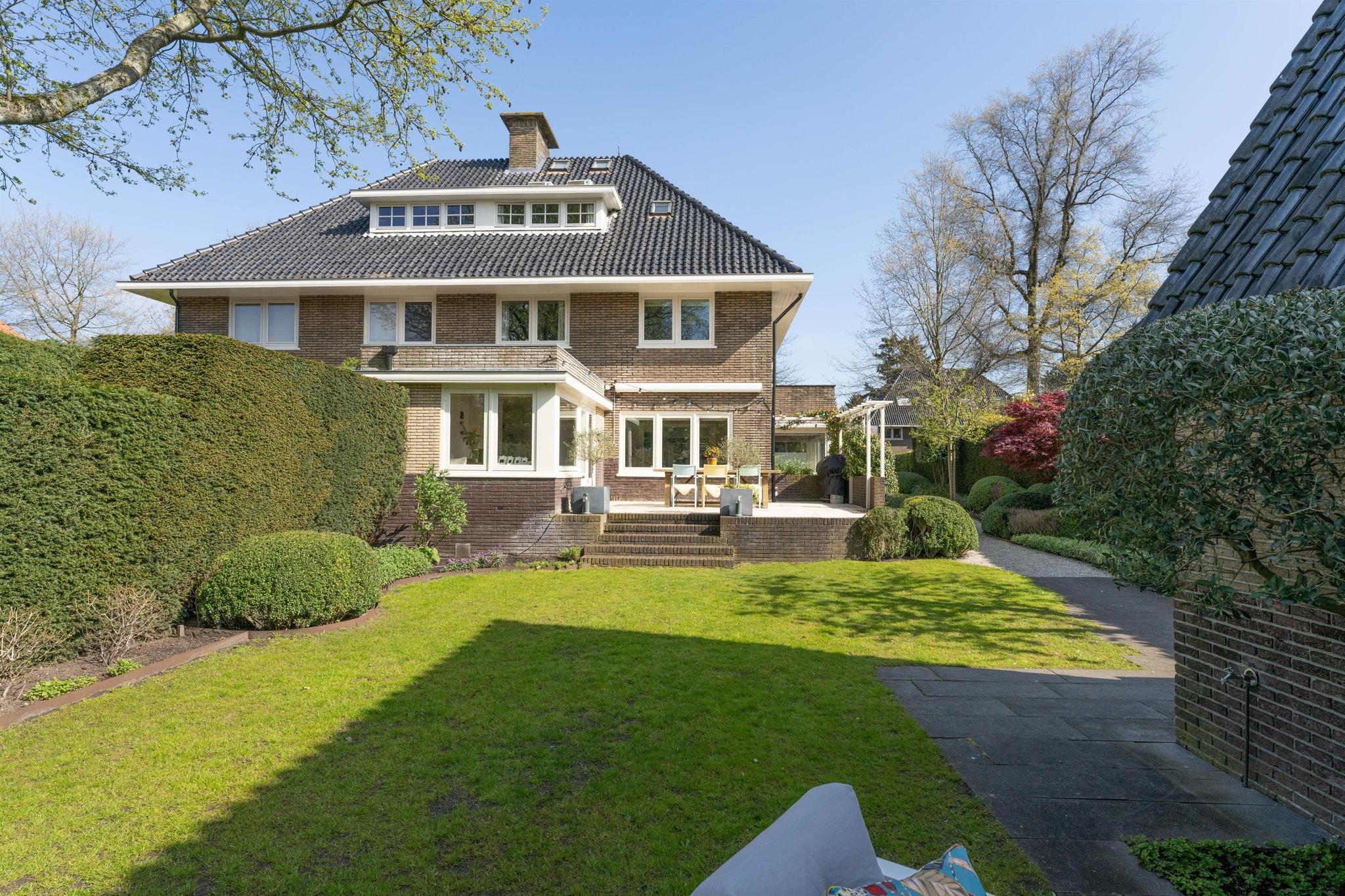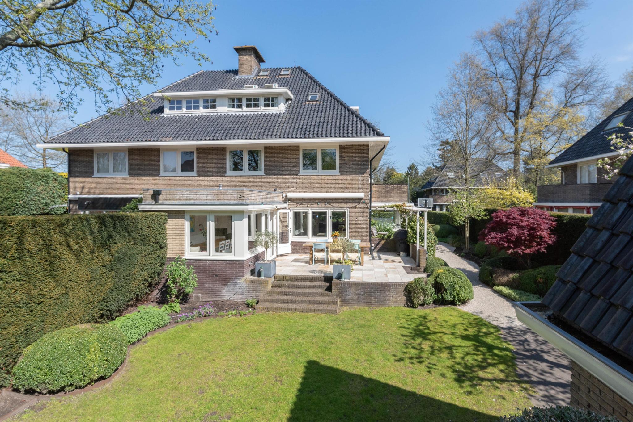 Deze karakteristieke, uitgebouwde twee-onder-een kap woning is nogal bijzonder vanwege de forse woonoppervlakte van maar liefst 245 m² (incl. guesthouse) en het grote perceel van 660 m². Sfeervol door het behoud van de jaren 30 stijlkenmerken, maar qua modernisering volledig “up-to-date”. Er is een mooi aangelegde en zonnige tuin op het zuiden met een vrijstaand multifunctioneel bijgebouw van 27 m². De woning heeft maar liefst zes slaap-/werkkamers en twee badkamers en een fijne woonkeuken die in december 2021 is geplaatst. Uitermate geschikt voor grote gezinnen. Het bijgebouw is geïsoleerd en heeft eigen voorzieningen.