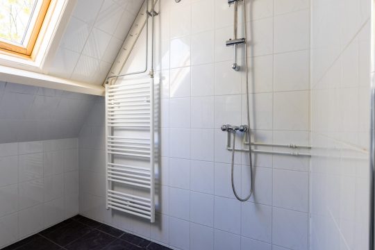 Overloop met veel lichtinval door de dakkapel aan de achterzijde en veel opbergruimte, slaapkamer met dakkapel aan de achterzijde en nog een slaapkamer aan de voorzijde, eveneens met dakkapel. De badkamer heeft een inloopdouche, wastafelmeubel, design radiator, aansluiting voor de wasmachine én er is daglicht/ventilatie door het dakraam. Het tweede toilet bevindt zich separaat op de overloop.
