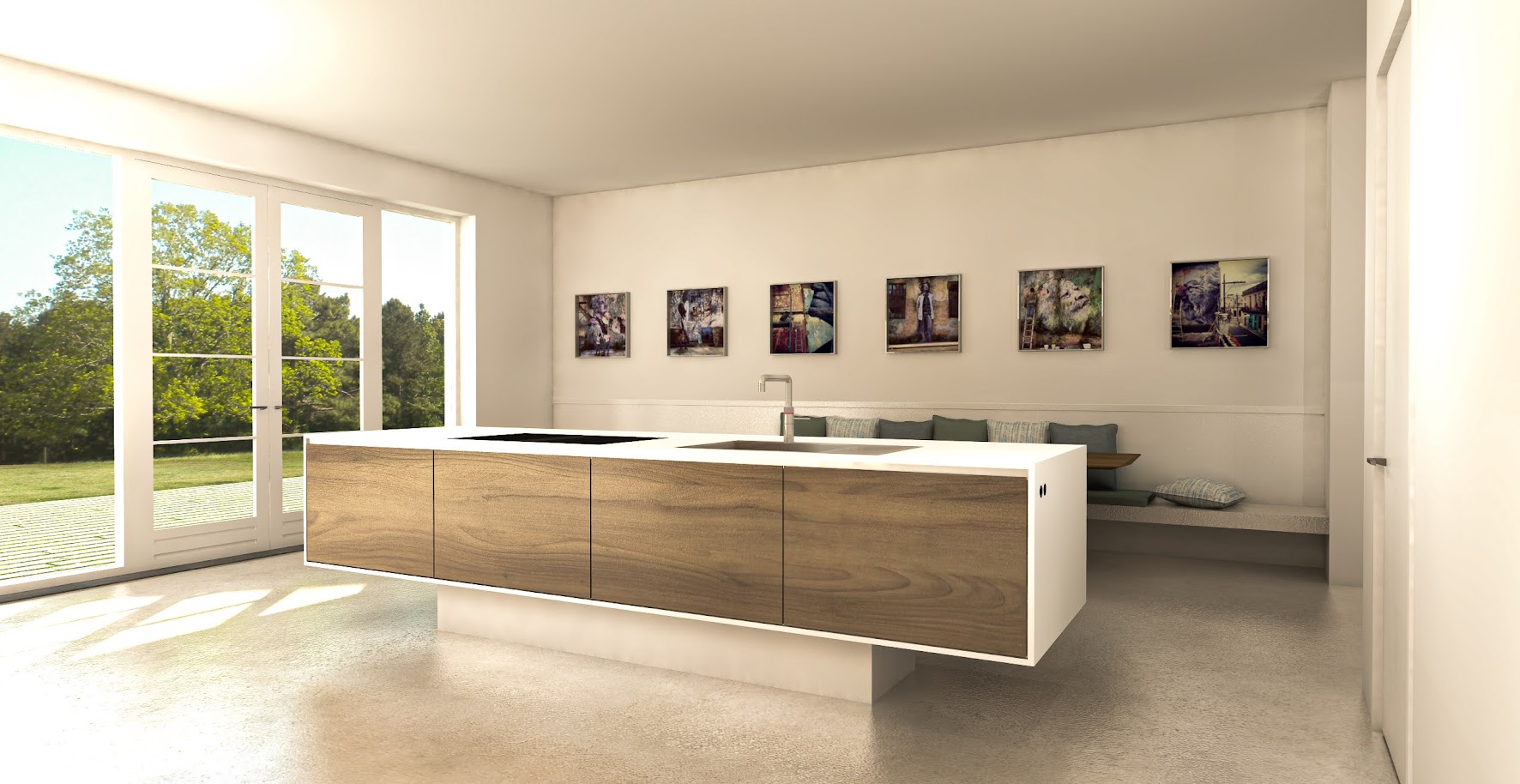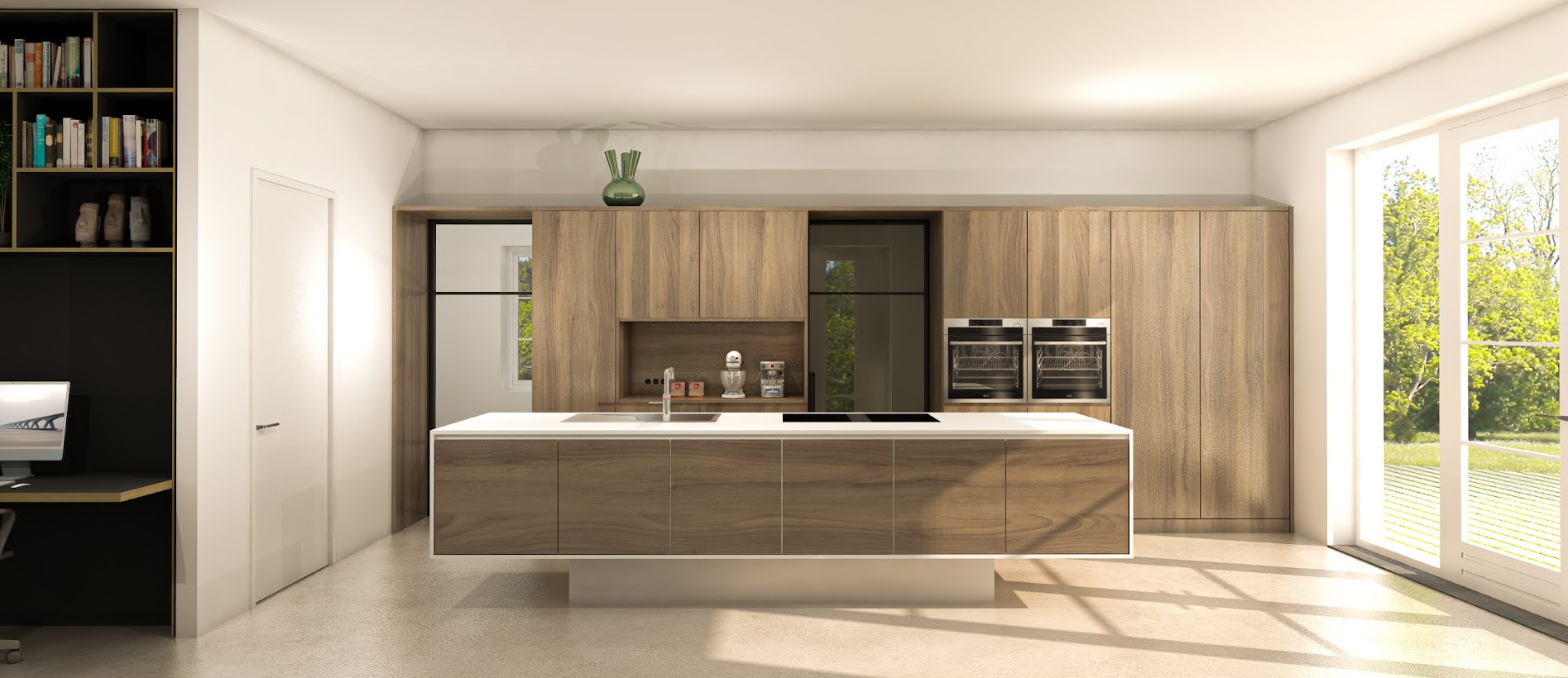o Luxe keuken met kookeiland en alle denkbare apparatuur