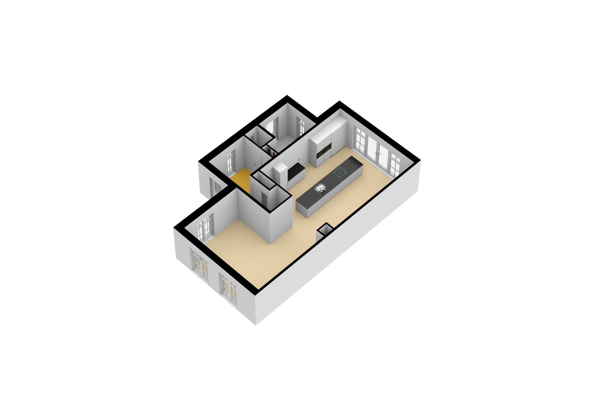 De keukenwand is slim ingedeeld, met een deur, die toegang geeft tot de bijkeuken. Via de bijkeuken is de zijtuin bereikbaar. Vanuit de woonkeuken is via de openslaande deuren de achtertuin en het water toegankelijk. Via de openslaande deuren in de keuken bereik je de bijna 4 meter diepe voortuin, hier is het in ochtendzon genieten van een kopje koffie, terwijl je kijkt op het voorgelegen grasveldje.