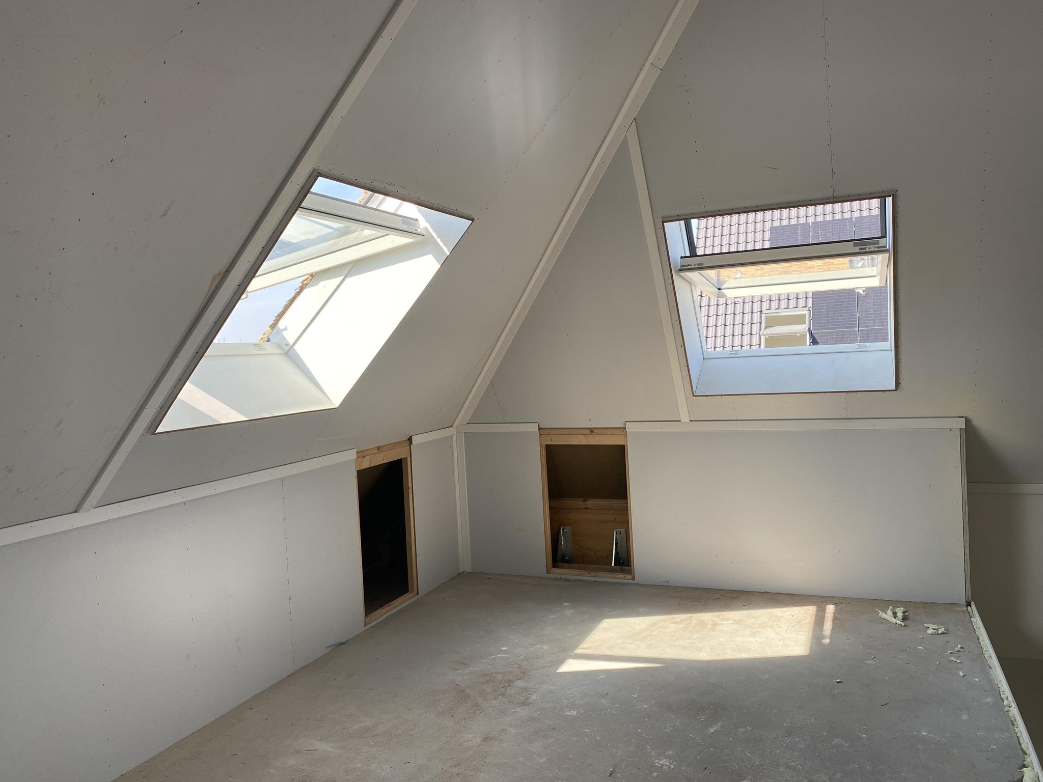 Ruime voorzolder met 2 dakramen. Indien gewenst kan hier gemakkelijk een vijfde slaapkamer gecreëerd worden. Vierde slaapkamer met wastafel aan de achterzijde. Behoefte aan een extra badkamer? Hier kan eenvoudig een derde badkamer worden gerealiseerd. Vergrootte technische ruimte/berging met de warmtepomp, aansluiting voor de wasmachine en droger, de warmte terugwin installatie en de omvormer voor de zonnepanelen. Verder is er op deze verdieping veel opbergruimte achter de knieschotten.
