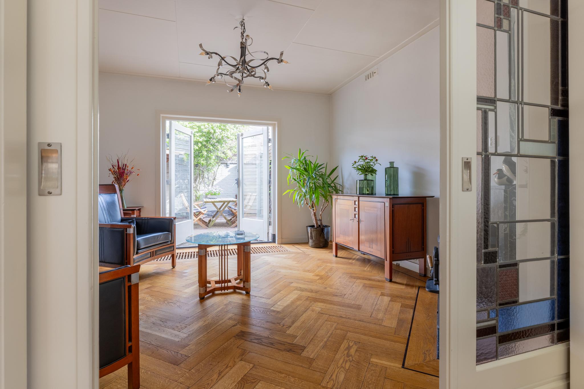 Deze prachtige twee-onder-een-kap woning (81 m²), die aan de buitenzijde al een plaatje is om te zien, heeft binnen ook nog steeds veel typische jaren ’30 stijlkenmerken, denk aan de en-suite deuren in de woonkamer, glas in lood, paneeldeuren en zelfs een origineel kruidenrek in de keuken!