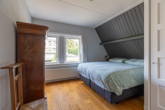 Overloop met in het plafond een glazen dakraam (voorheen trapluik) waardoor er veel licht binnenstroom vanuit de lichte zolder met ook nog eens een prachtig zicht op de kapconstructie, twee grote slaapkamers, beide inbouwkast en één met wastafel. Badkamer met daglicht aan de achterzijde met douche, wastafel en wasmachine/droger aansluiting.