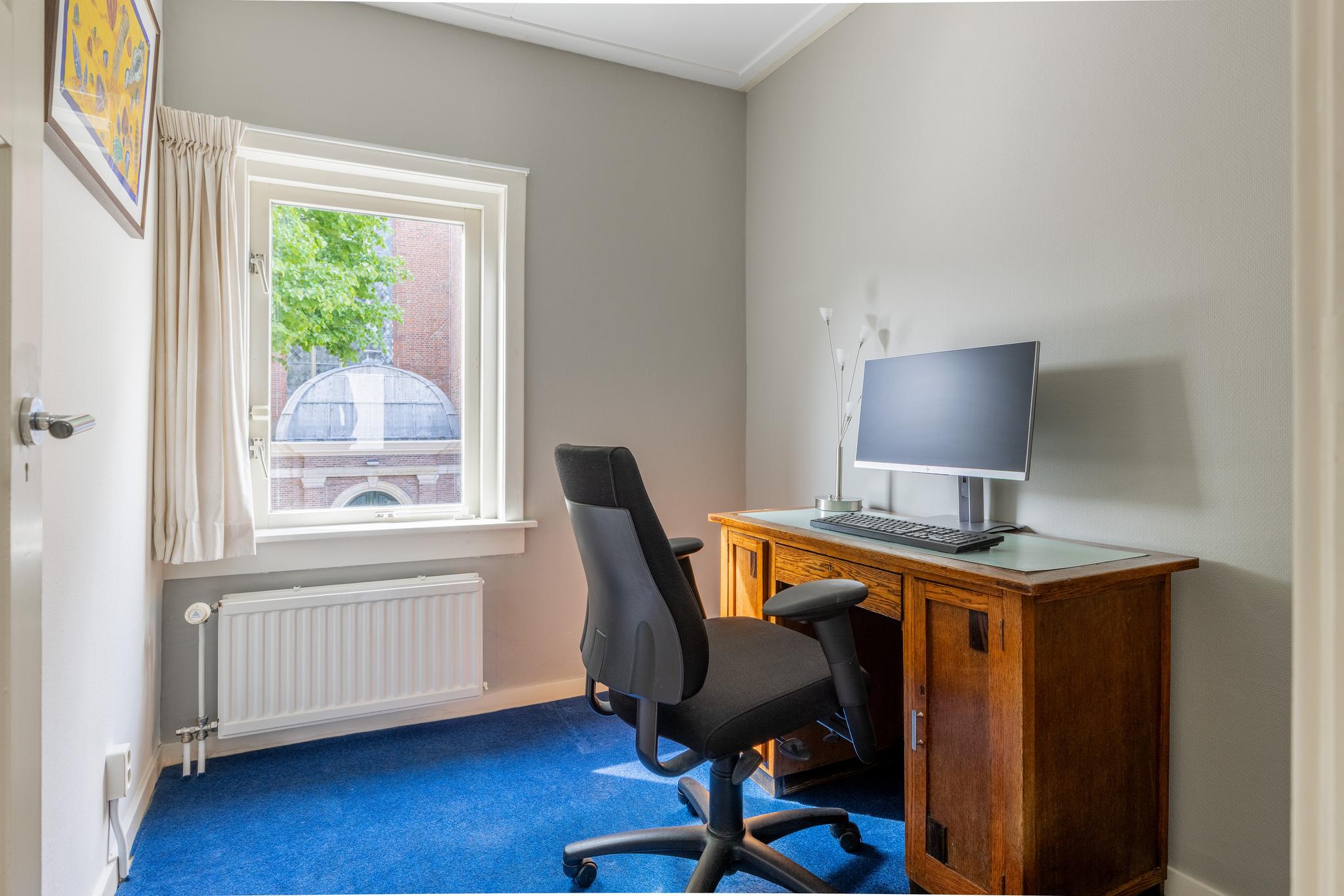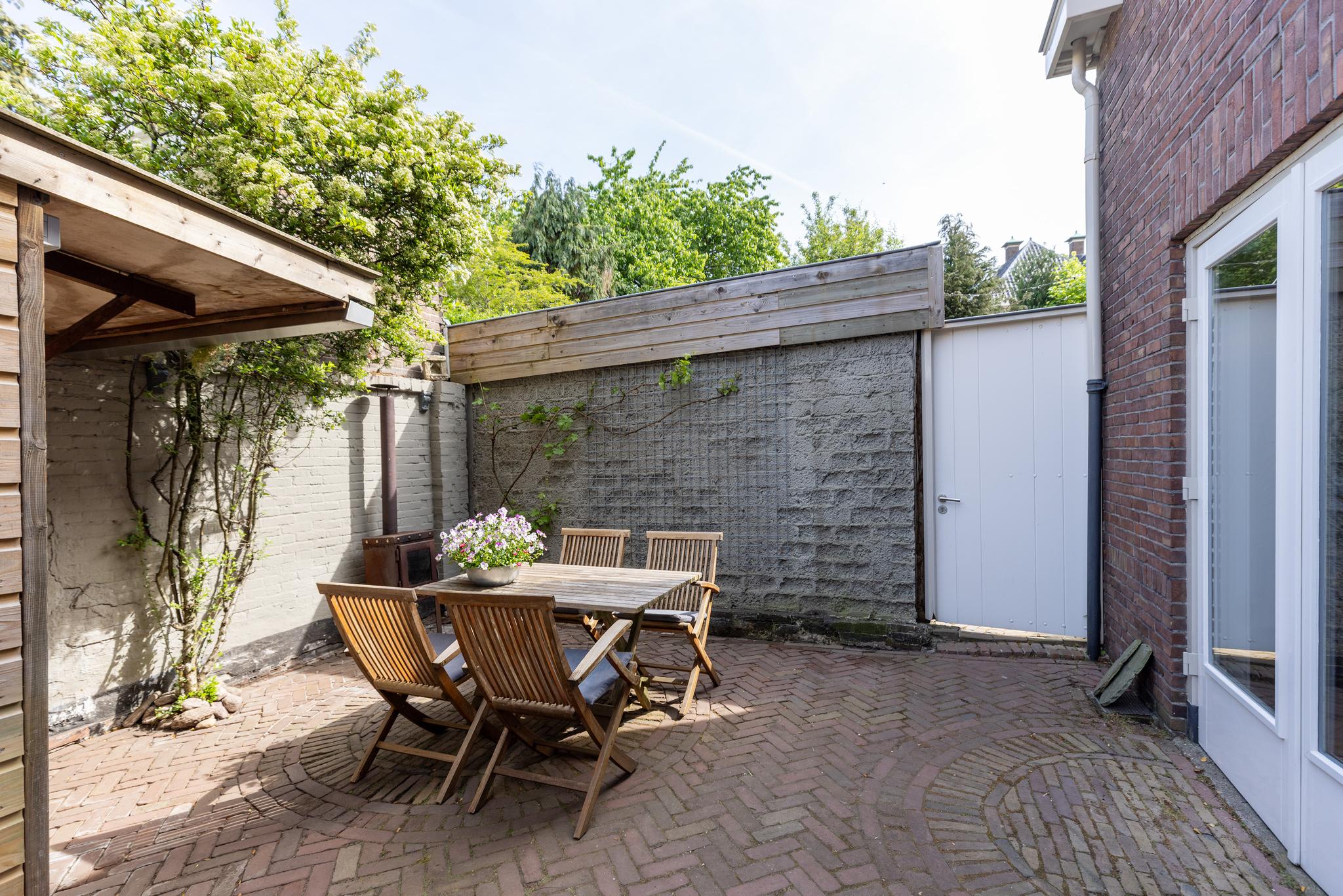 De twee-onder-kap woning is zeer goed onderhouden, heeft openslaande deuren naar de achtertuin, 3 slaapkamers en een grote zolderruimte. In de brede (ca. 6 meter) achtertuin ontbreekt een berging niet en je kan je fiets er makkelijk stallen, want er is een achterom.