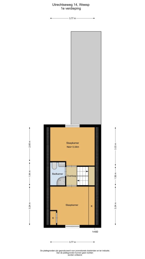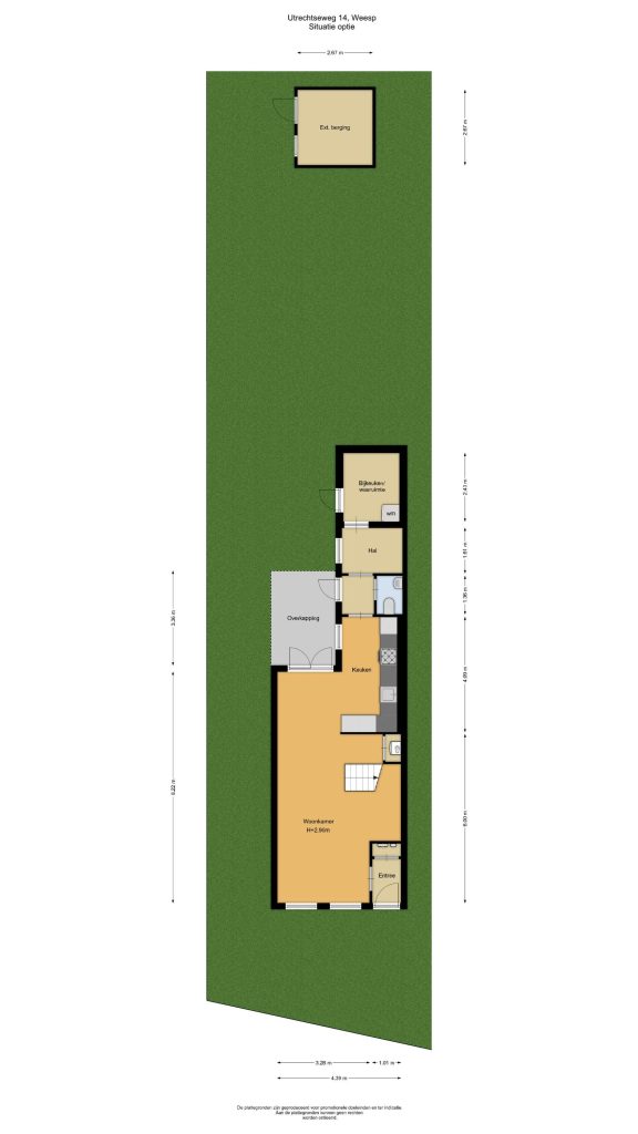 o Ruim perceel eigen grond: ca. 260 m² (deel perceel dit i.v.m. de mogelijke separate verkoop van de garage)