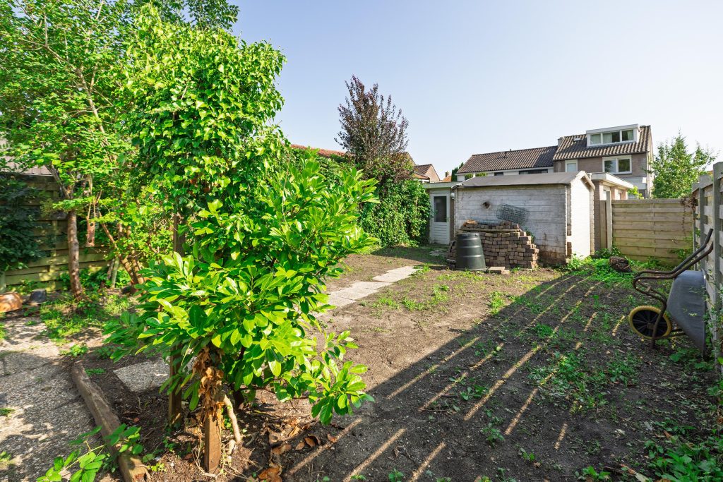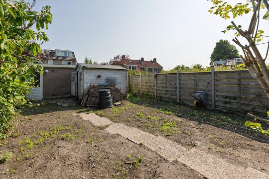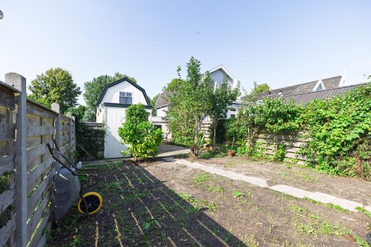 De achtertuin is geheel naar wens aan te leggen. Er is een houten berging (7,1 m²), ideaal voor fietsen, tuingereedschap en extra opslag.