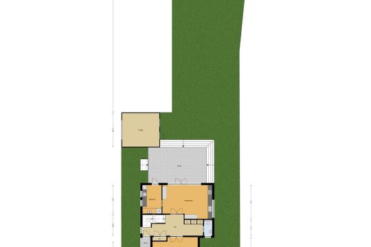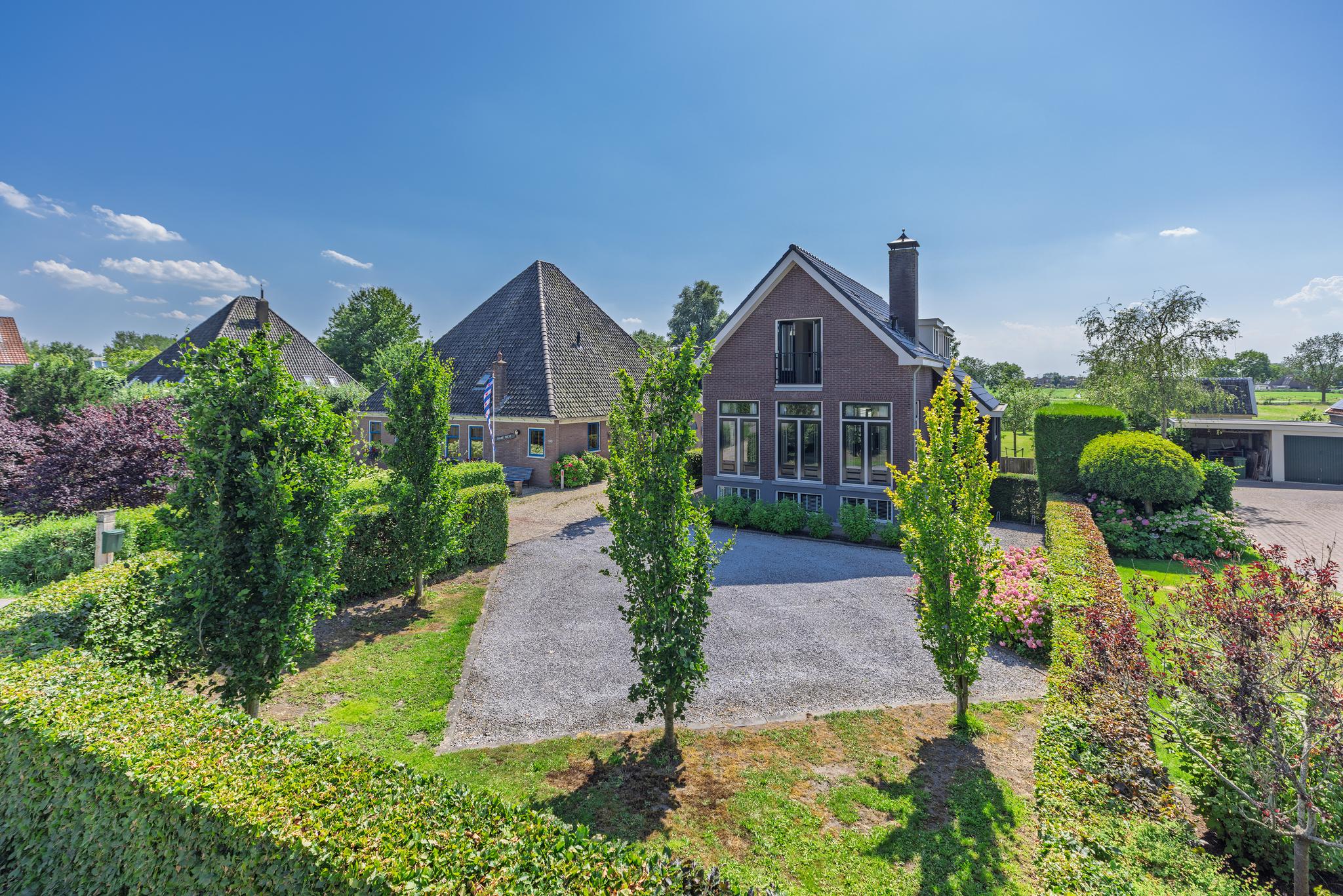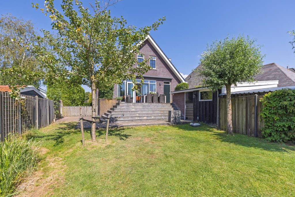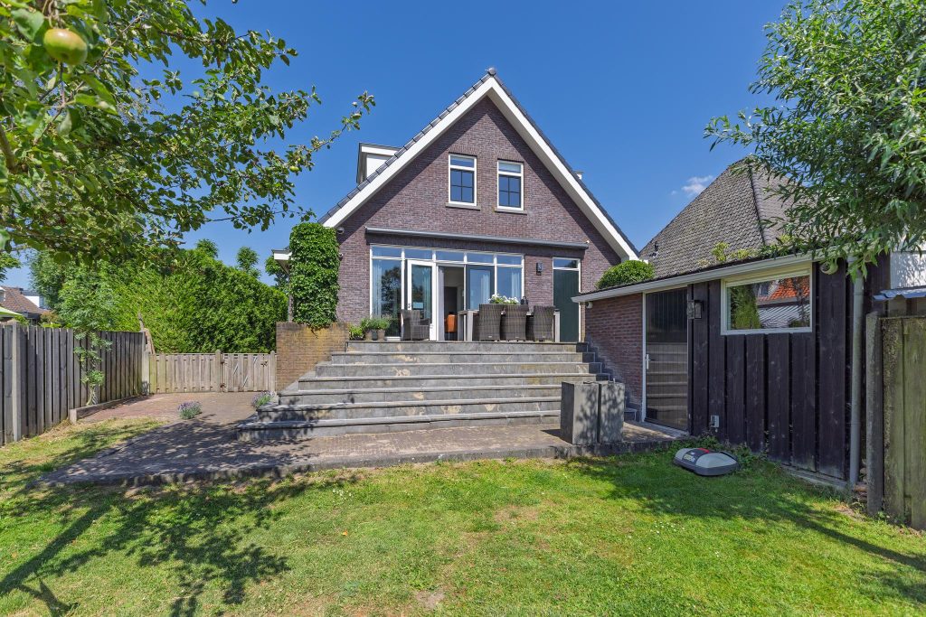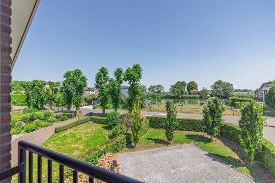 Aan de voorzijde bevindt zich de voortuin en zijn er minimaal 3 plekken om auto’s te parkeren, ook is er een laadpaal. Verder is er een grote garage van bijna 26 m². En dan natuurlijk de gigantische achter- (en zij-)tuin. Vanuit de woonkeuken start deze met een groot zonneterras, waar het heerlijk genieten is van het uitzicht op de weilanden en je eigen tuin.