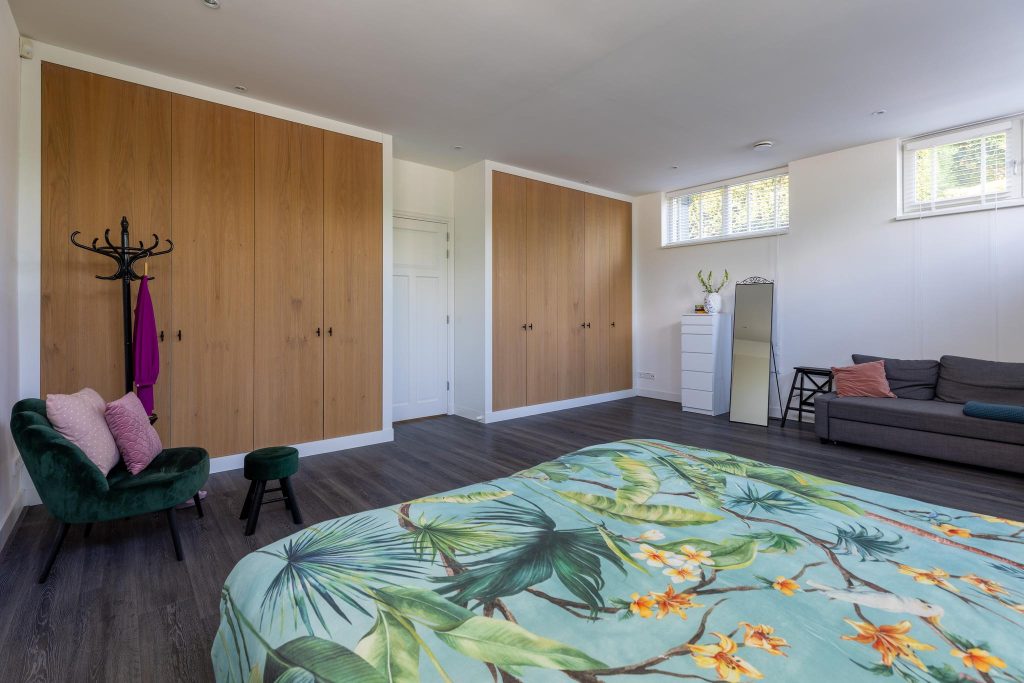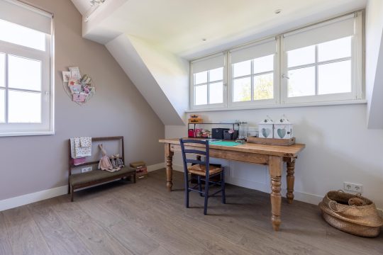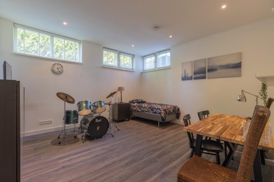 Dat heeft er ook voor gezorgd dat we in dit huis heerlijk hebben gewoond met opgroeiende kinderen. Het royale souterrain zorgde ervoor dat onze kinderen, toen ze ouder werden, veel privacy hadden en wij dus ook. Al geeft het souterrain natuurlijk veel meer mogelijkheden, denk bijvoorbeeld aan een praktijk, muziek maken, studio. Maar ook zelf slapen, het is er zo stil en altijd een heerlijke temperatuur.