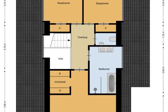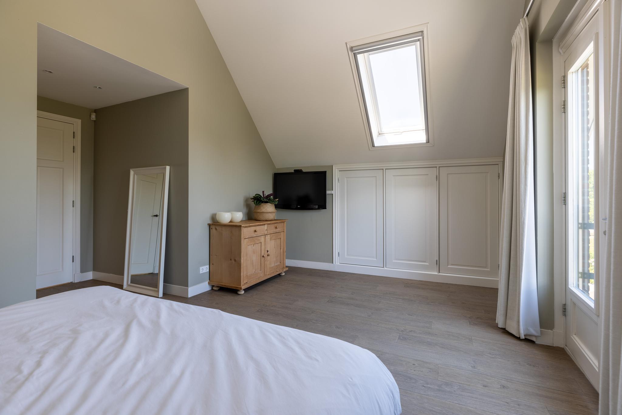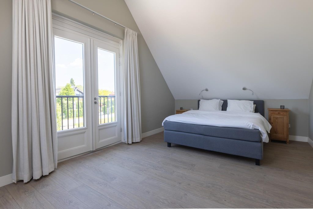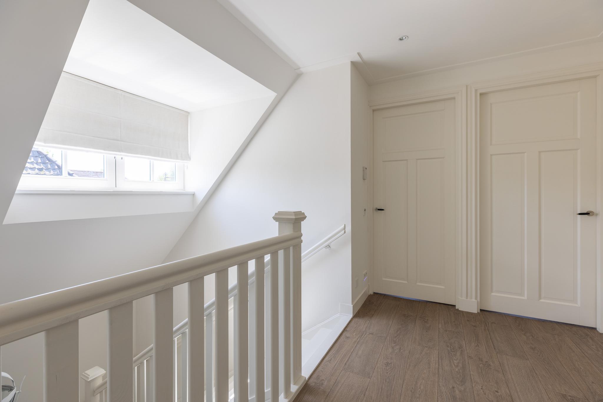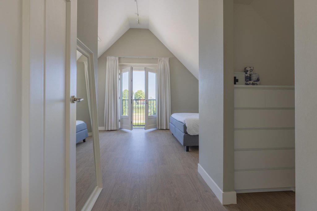 Overloop, master bedroom aan de Vechtzijde met Frans balkon met dubbele deuren, walk-in closet. Ruime badkamer met ligbad inloopdouche en dubbele wastafel. Separaat toilet met fontein. Twee slaapkamers aan de achterzijde met beide een vaste kast.